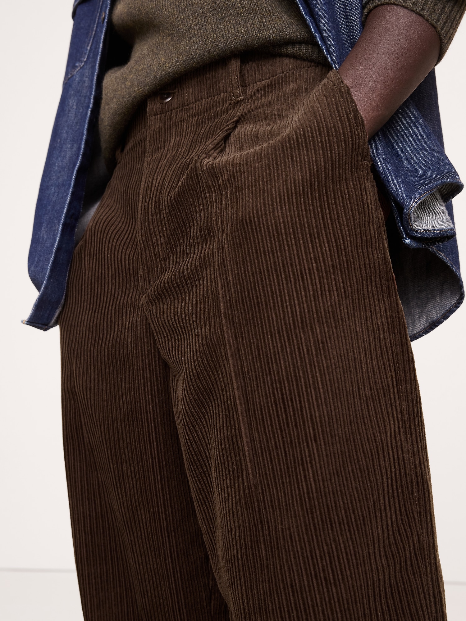 Inspired by a vintage pair of officer’s chinos, this straight-leg pant is cut with a slightly higher rise and an inseam length that stacks nicely at the hem. For fabric, we selected a soft, cotton corduroy with a mix of skinny and wide wales for a retro feel.