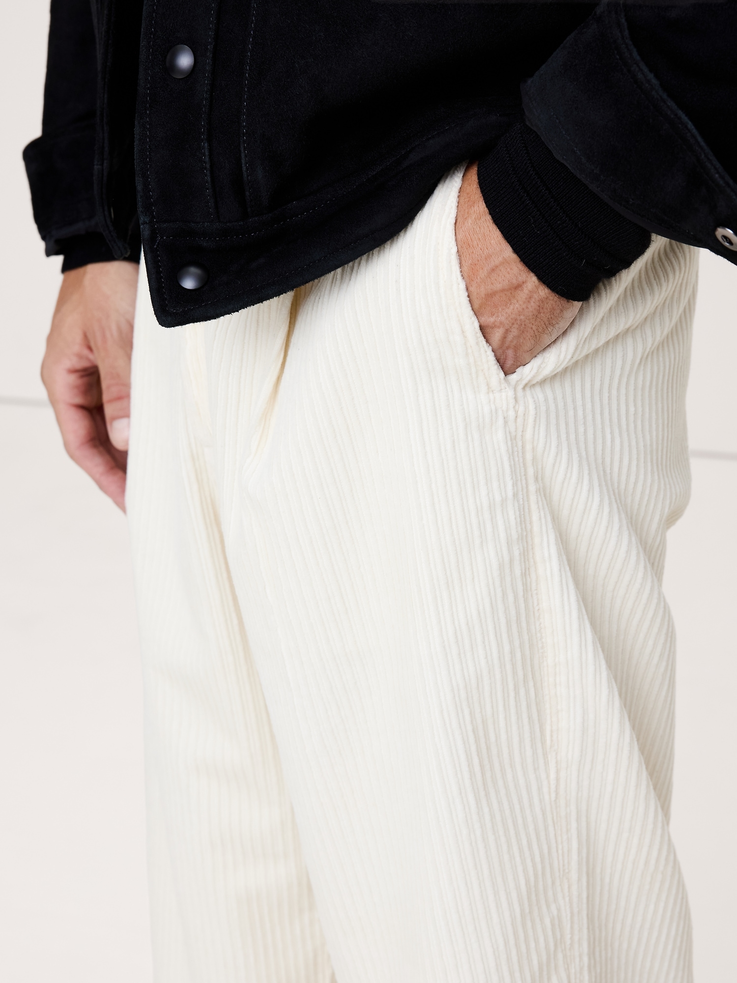 Inspired by a vintage pair of officer’s chinos, this straight-leg pant is cut with a slightly higher rise and an inseam length that stacks nicely at the hem. For fabric, we selected a soft, cotton corduroy with a mix of skinny and wide wales for a retro feel.