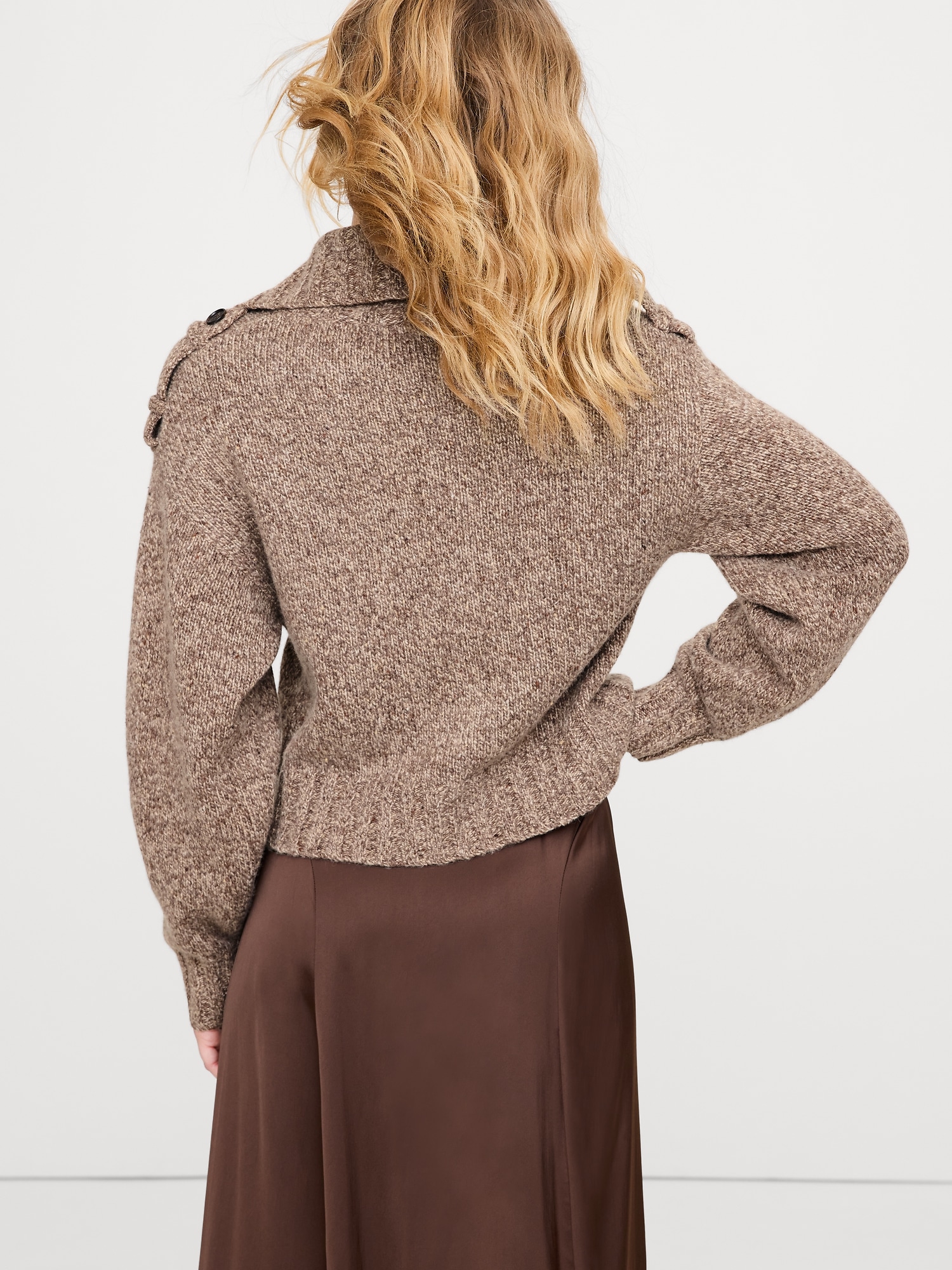 Marled Cashmere-Merino Blend Epaulet Cardigan
