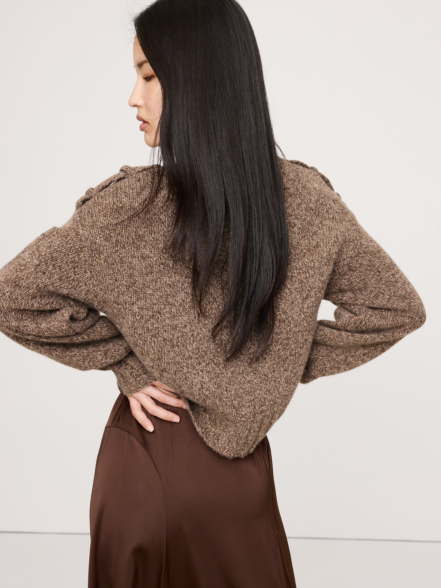 A classic crew-neck sweater with a utility twist, we knitted this one from a soft and warm blend of cashmere and Merino wool with shoulder epaulets as a nod to our heritage.