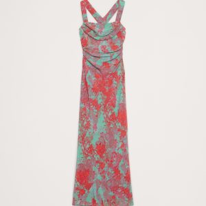 Cowl neck and cross-back straps.