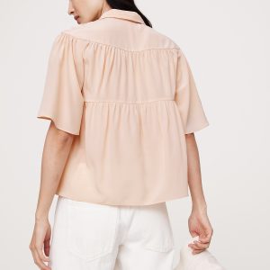 Cut from our signature silk de chinethis tie-front top feels effortless but looks more dressed-up thanks to its tiered construction. Did we mention it’s also machine washable?