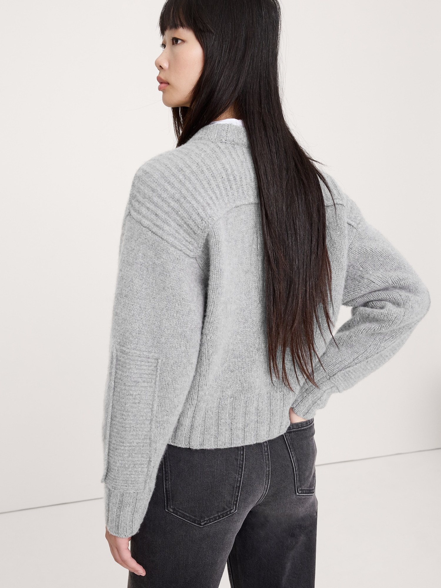 A layer to carry you through cooler seasons to come, we designed this cute crew-neck sweater with ribbed panels for a utility twist. Crafted in a warm and luxuriously soft blend of Merino wool and cashmere.