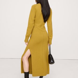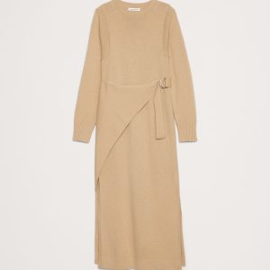 We’re dreaming of a warm sweater dress to carry us through cool weather. Enter, this maxi wrap dress, knitted in soft blend of Merino wool and certified-organic cotton, with a tie waist and side slit.