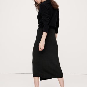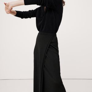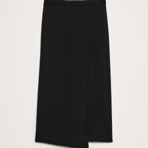 This classic wrap-front skirt is knitted from our signature, extra-fine Merino wool using a ribbed-knit stitch to enhance its beautiful drape.