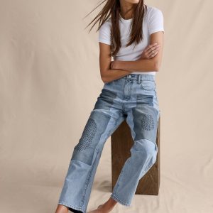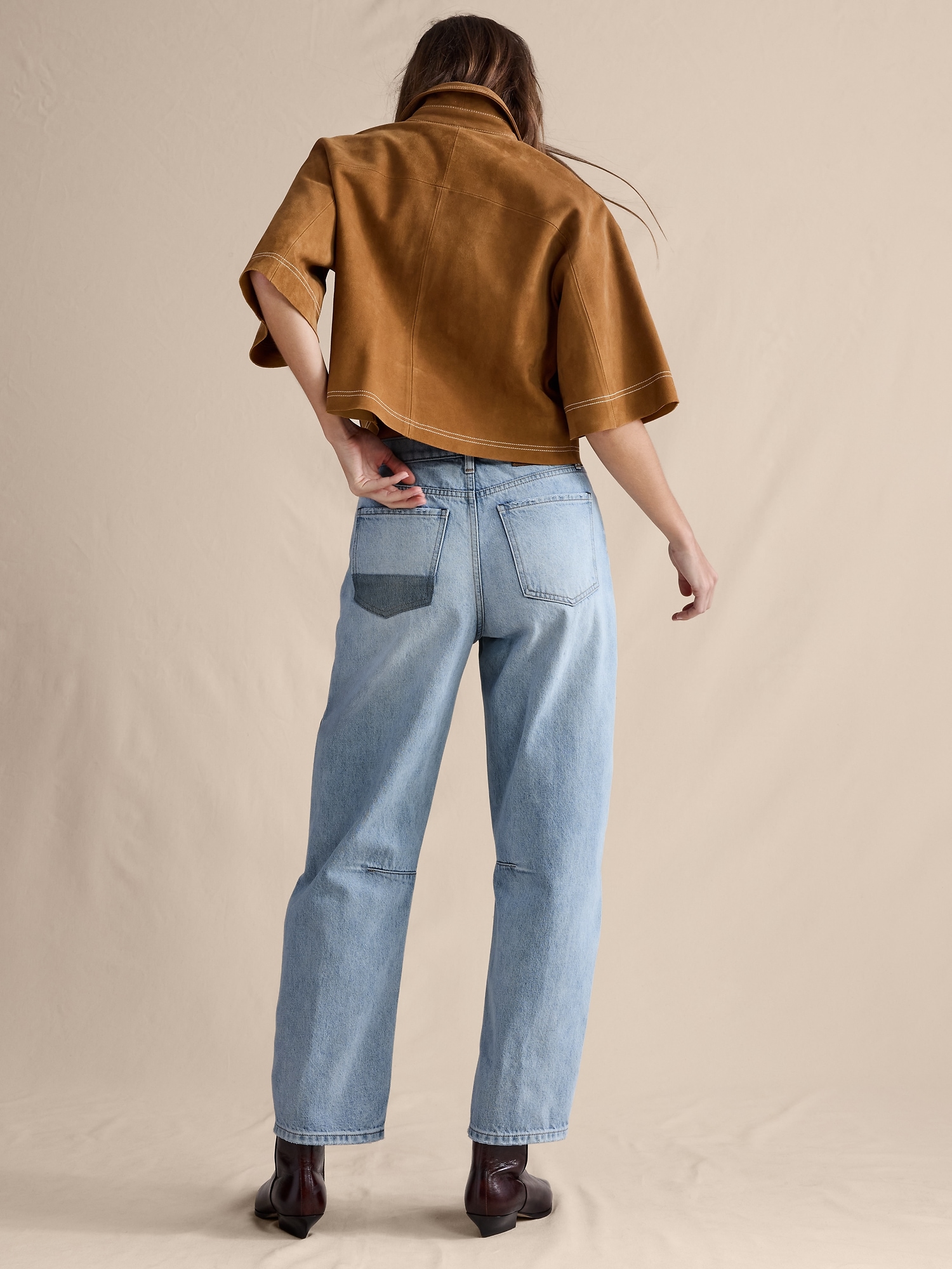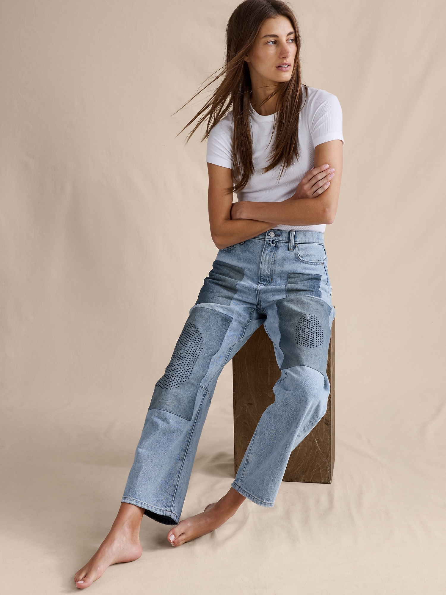 We wanted these barrel-leg jeans to capture the feeling of a well-loved pair, so we added patchwork detailing and sashiko-like stitching. Cut in 100% cotton denim so they mold to you with every wear.