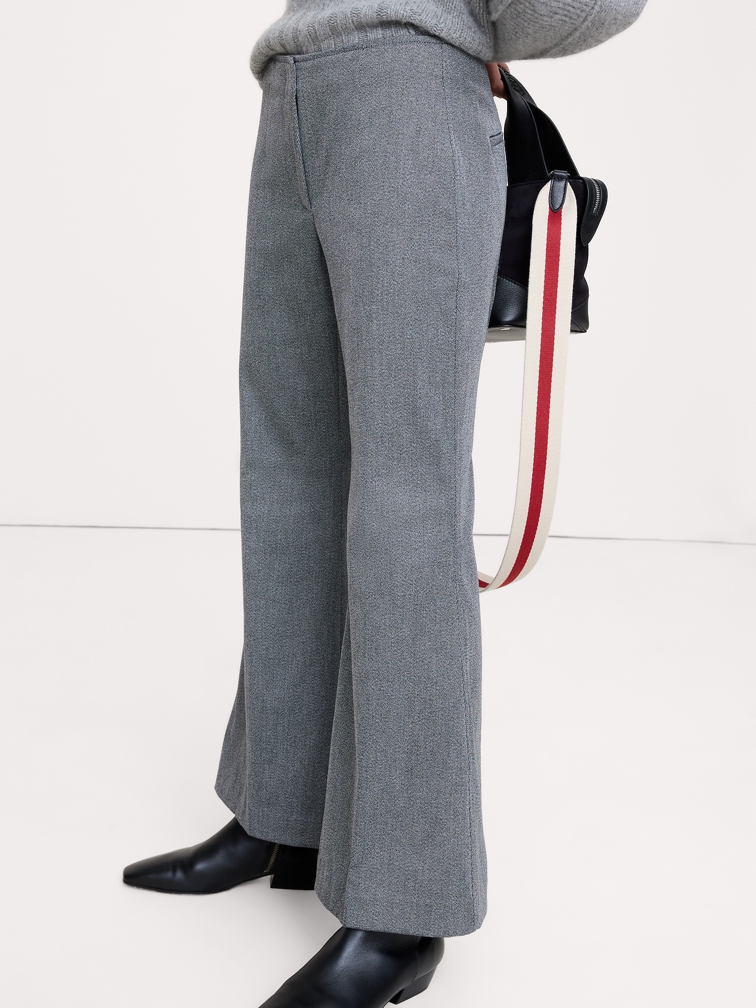 The pant we’ve been dreaming of. This one brings the 2000s vibes with a mid-rise flared silhouette and a barely-there waistband design. Cut in an wool-blend we love for its smooth look and stretch.