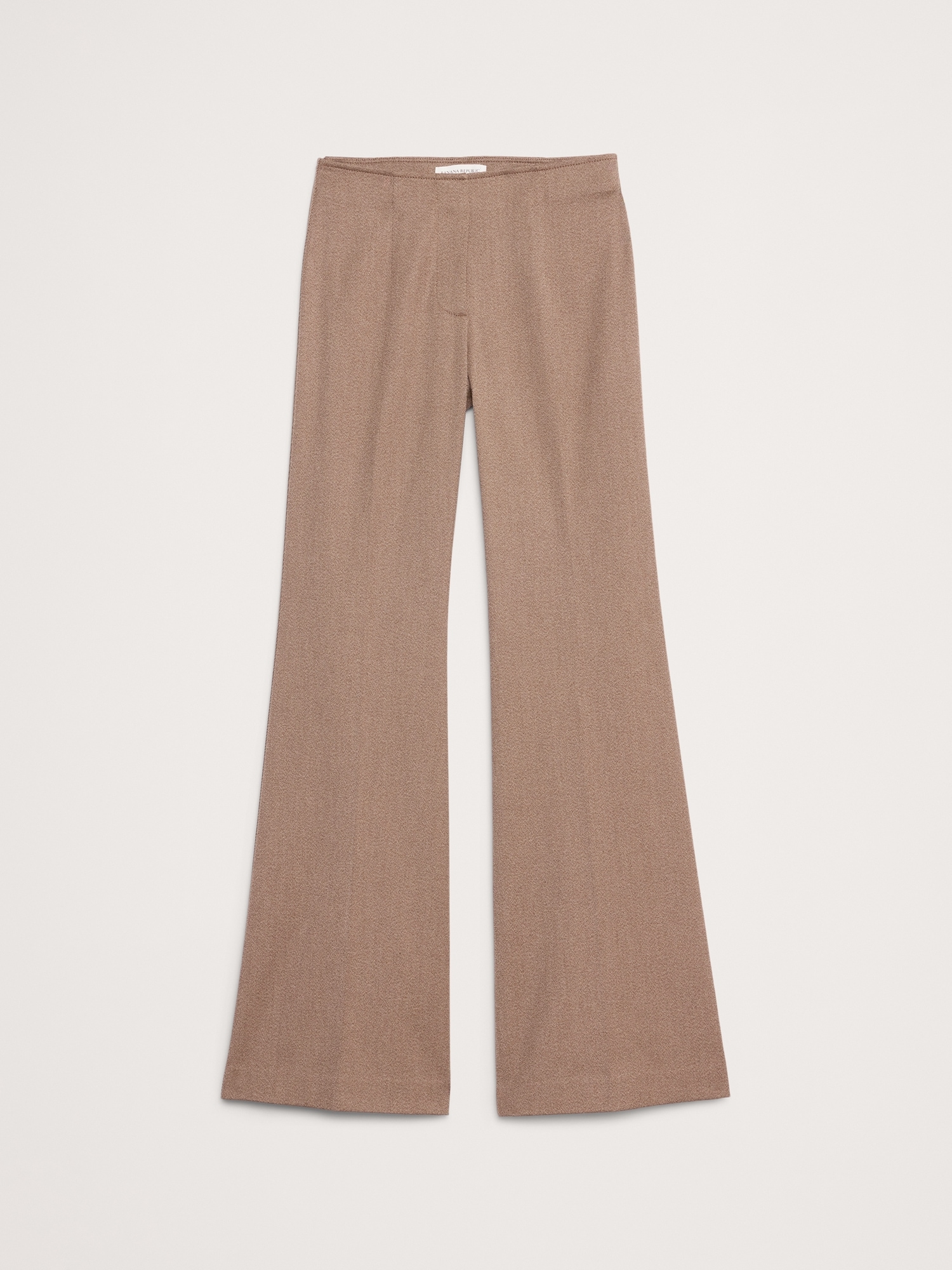 The pant we’ve been dreaming of. This one brings the 2000s vibes with a mid-rise flared silhouette and a barely-there waistband design. Cut in an wool-blend we love for its smooth look and stretch.