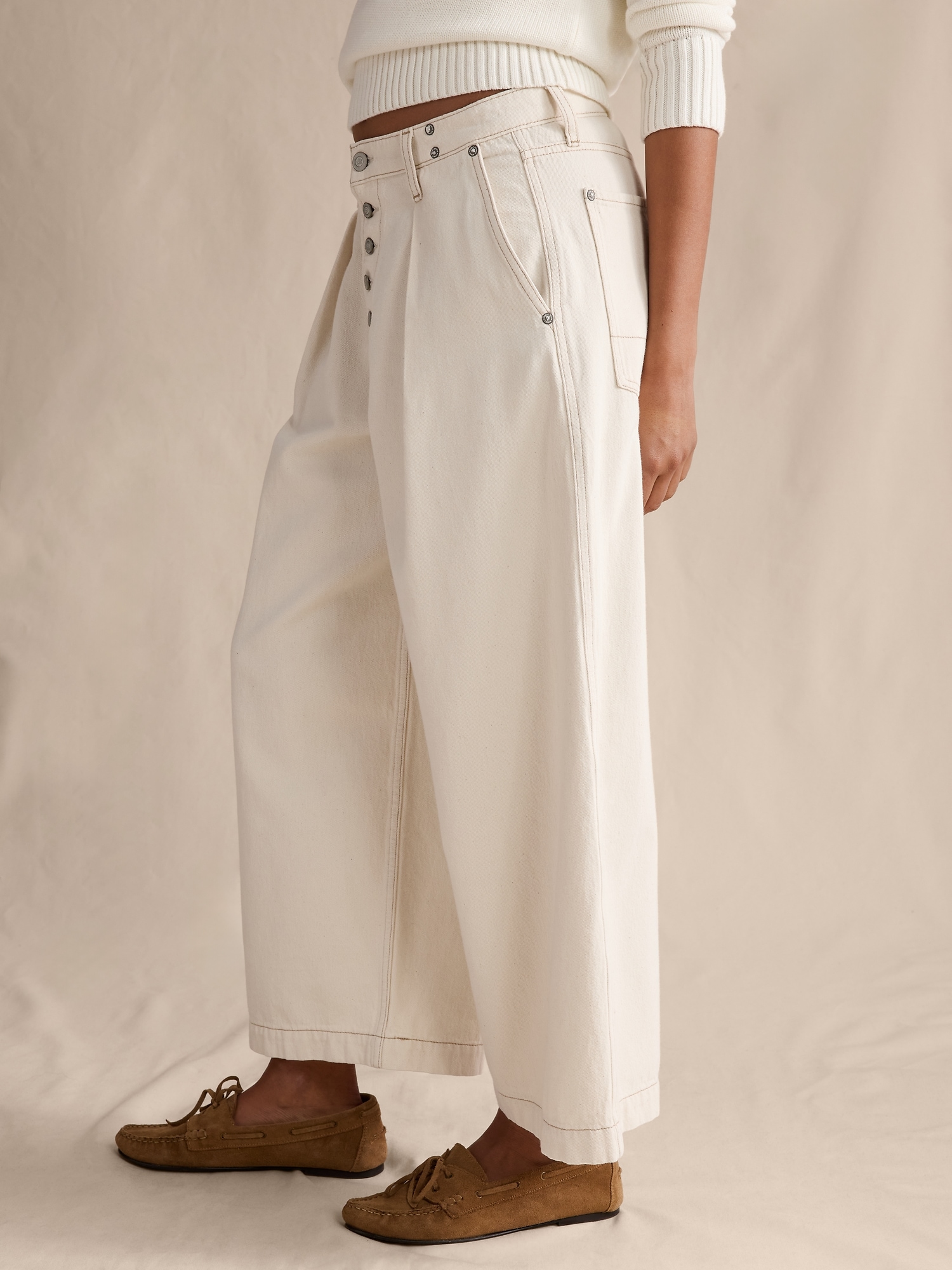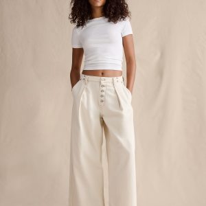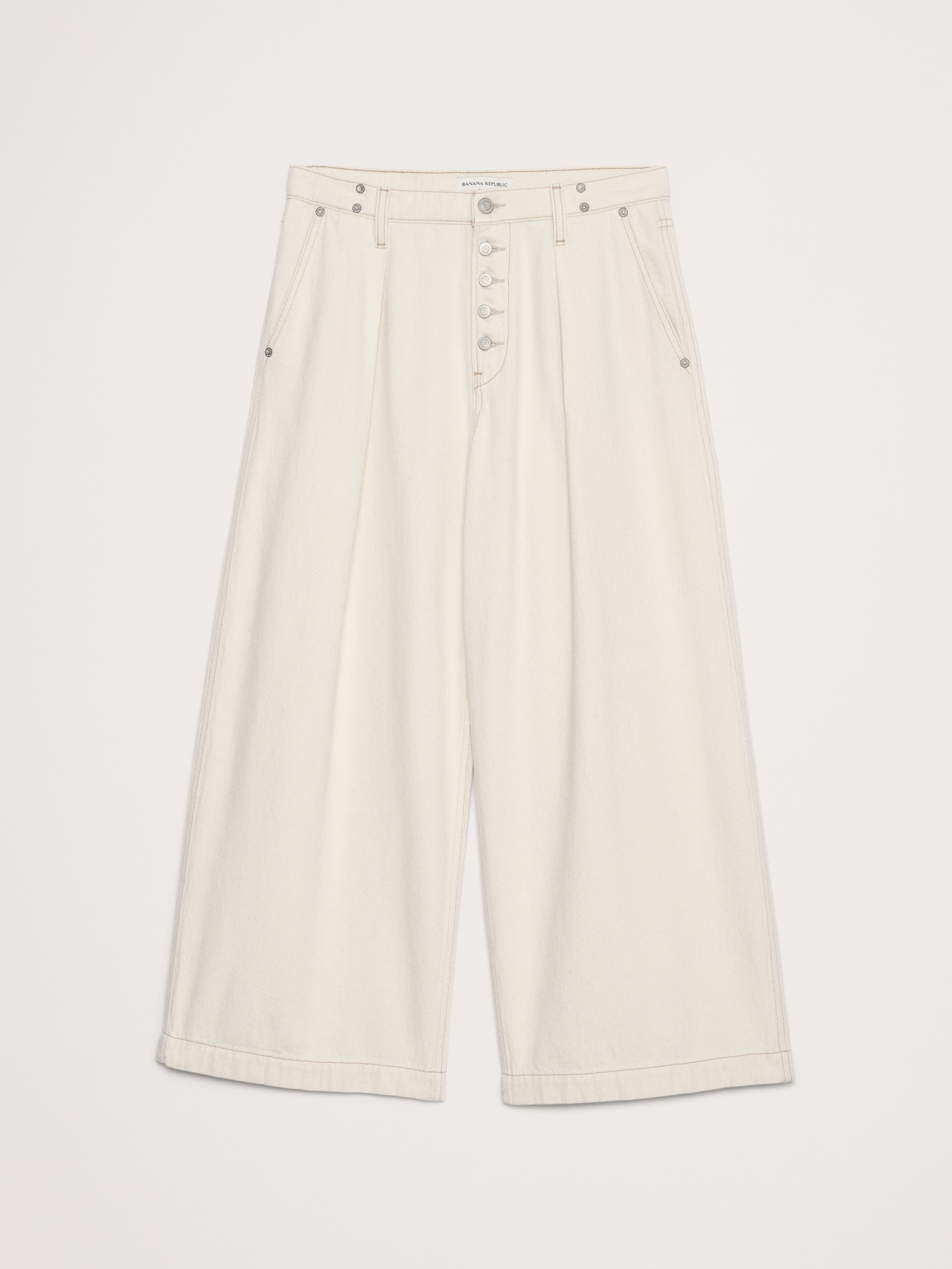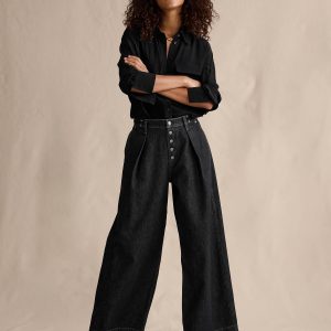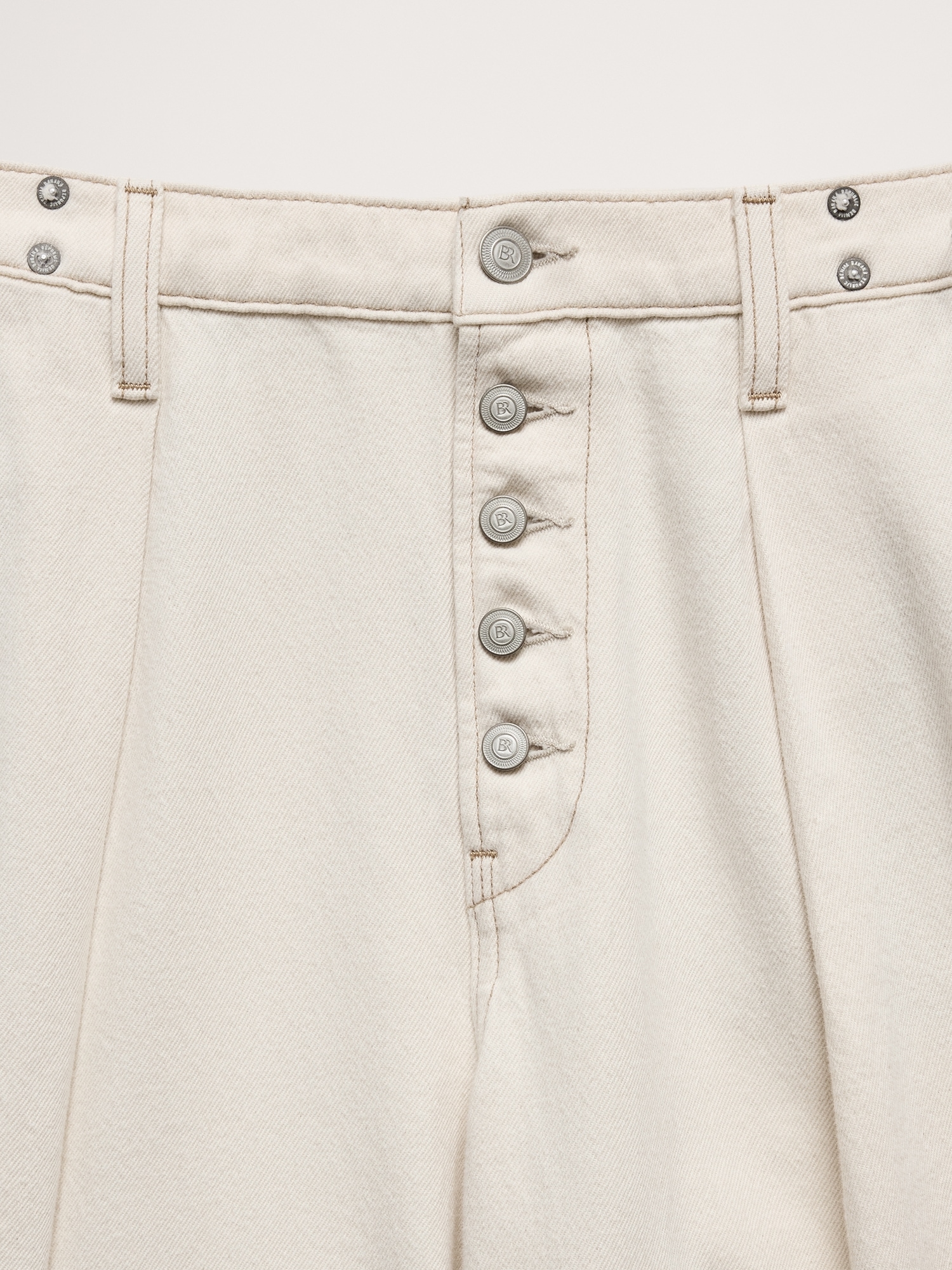 Cute jeans. We borrowed some tailored elements from a pair of vintage trousers (like the pockets and pleated front), but kept the fit slouchy and low on the hips. Cut from certified regenerative cotton and washed for lived-in softness.