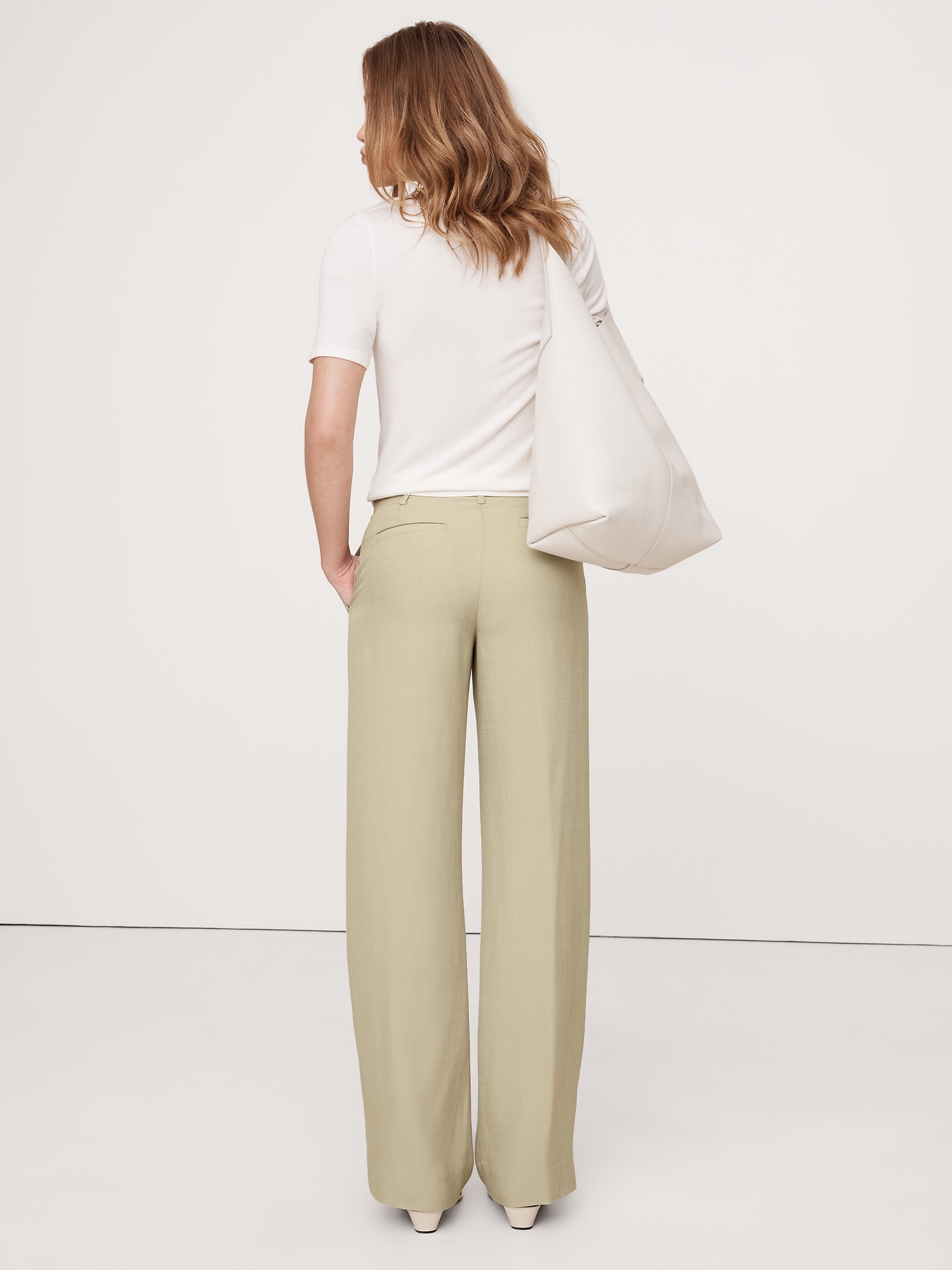 The vibe here is relaxed, yet put-together. We cut these wide-leg pants from our premium drapey twill—a fabric we love because it strikes the perfect balance between tailored and casual-cool.