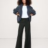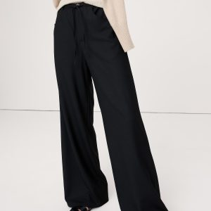 Wide leg fit: Mid-rise with a straight fit through the thigh and wide leg. Full length.
