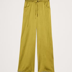 Mid-Rise Wide-Leg Pull-On Stretch-Satin Pant