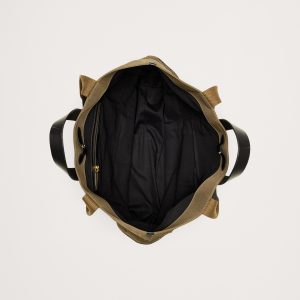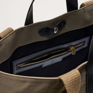 Rugged and minimalist, this canvas and buffalo leather tote bag is designed with space to spare thanks to a large, uninterrupted interior with a snap closure. We added one zip pocket inside to keep track of small items like phones and keys, as well as two sets of straps so you can carry by hand or on the shoulder.