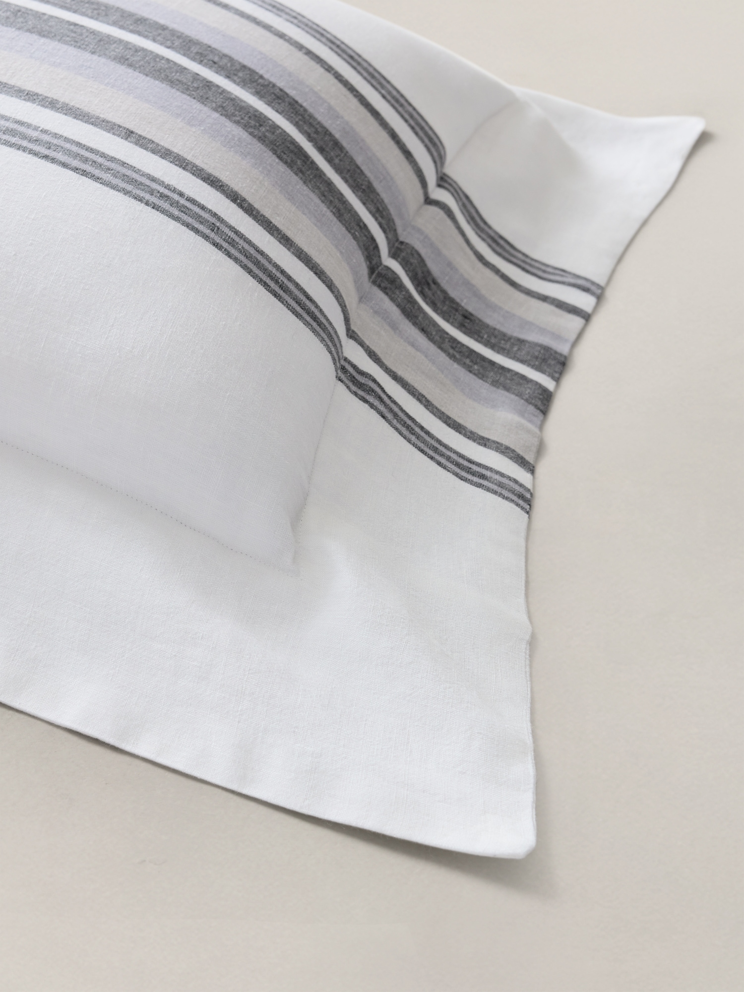 Loomed from premium linen, our shams offer a timeless design and refined hand. The textural material is expertly tailored and adorned with multicolored stripes against a white ground for a graphic feel. Pair with the coordinating duvet cover for a cohesive look