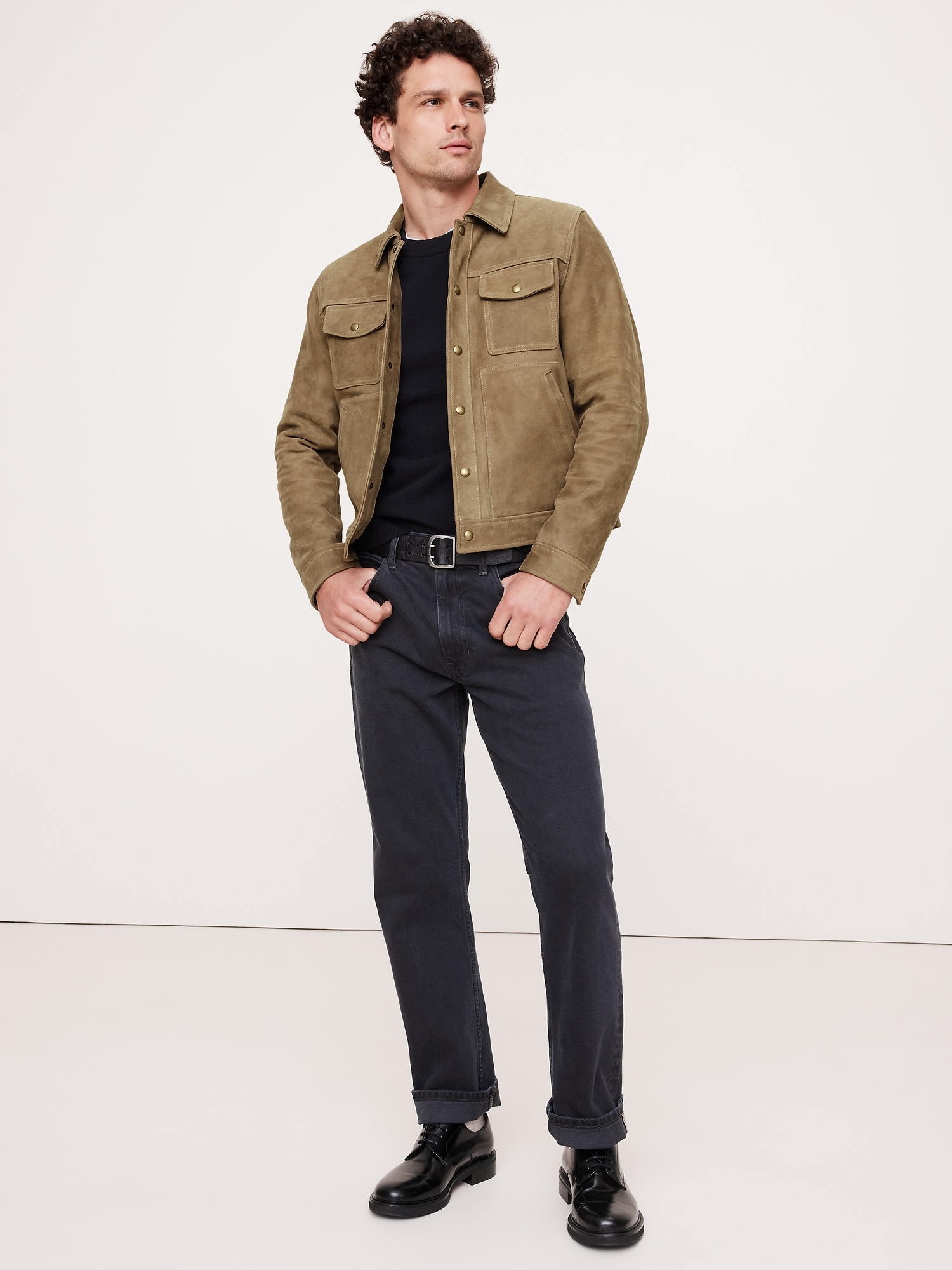 A luxurious twist on a utilitarian staple, this leather jacket borrows its silhouette from classic trucker jean jackets. We kept the pocketing, snap buttons, and top-stitch detailing of the original, and rendered it in premium nubuck leather, made in one of the world’s most renowned ateliers. Plus, since it’s nubuck, it will only get better with time, developing a rich and unique patina.