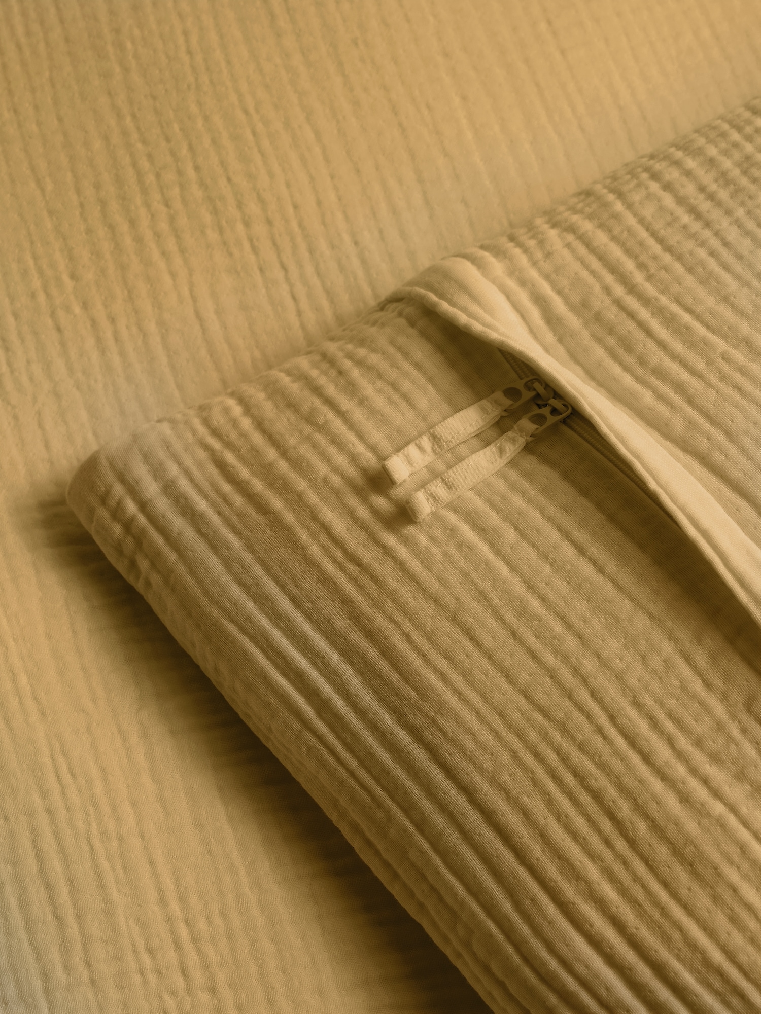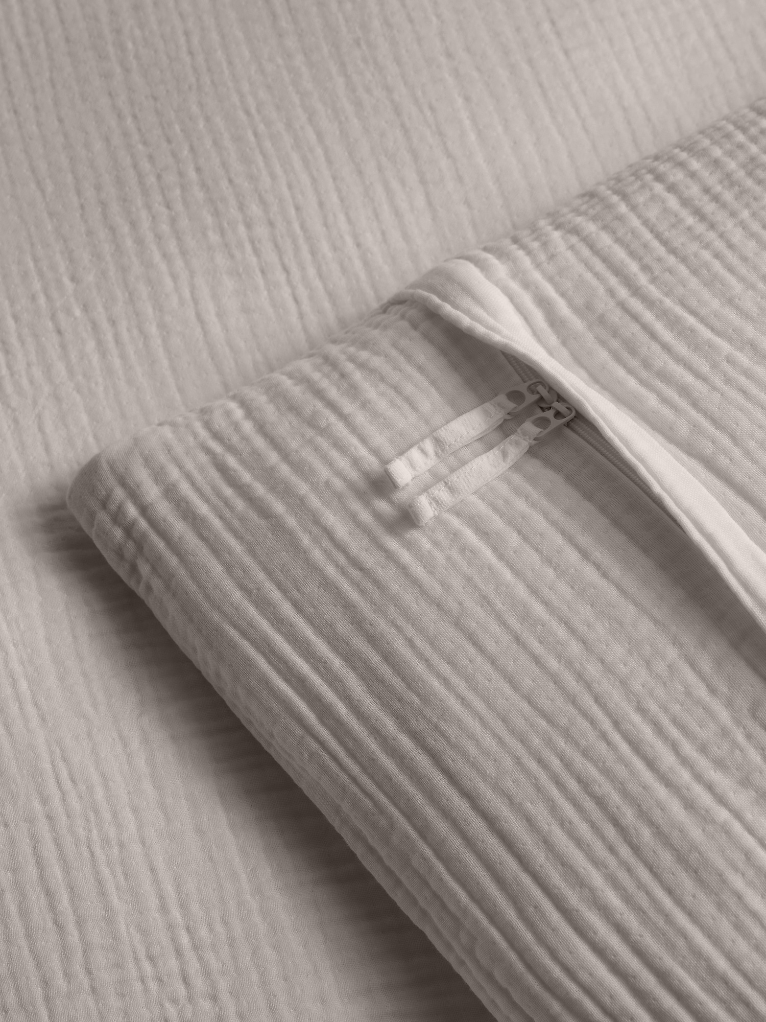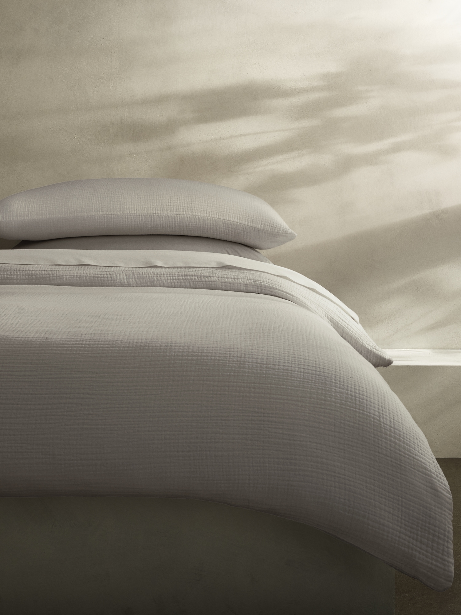 A cocoon of cloudlike luxury, this sumptuous duvet cover is crafted from layers of soft organic cotton gauze, an ideal choice to layer through the seasons and envelop you in opulence.