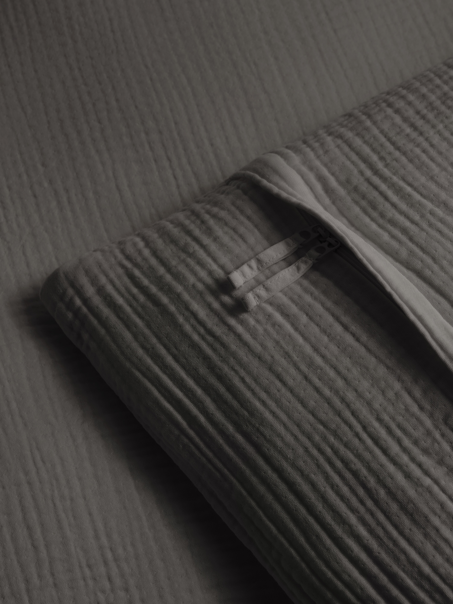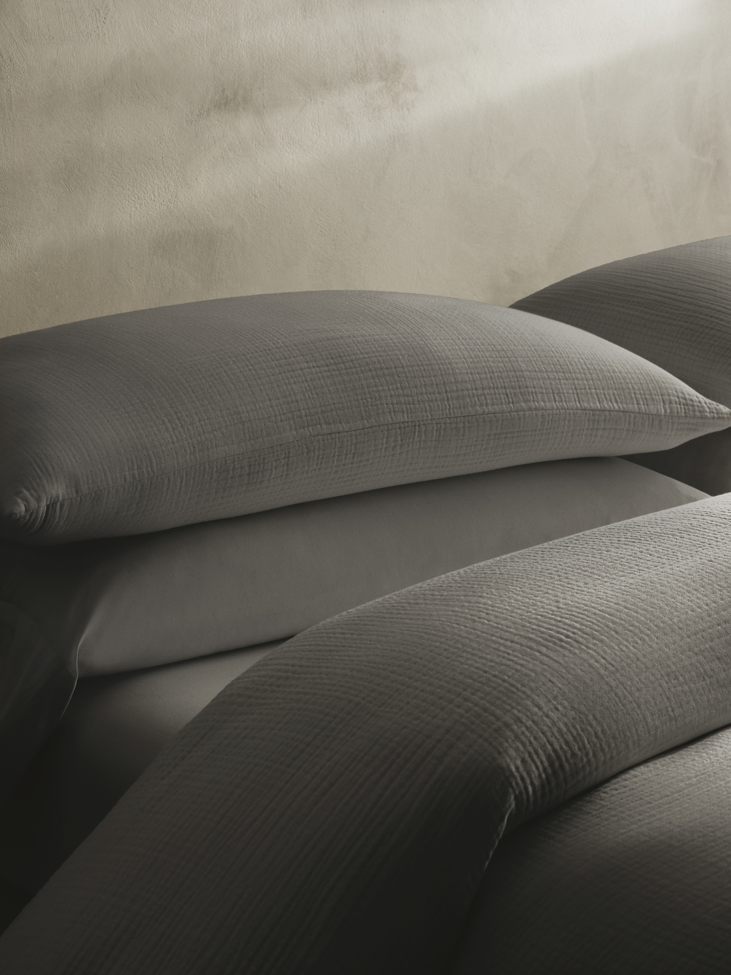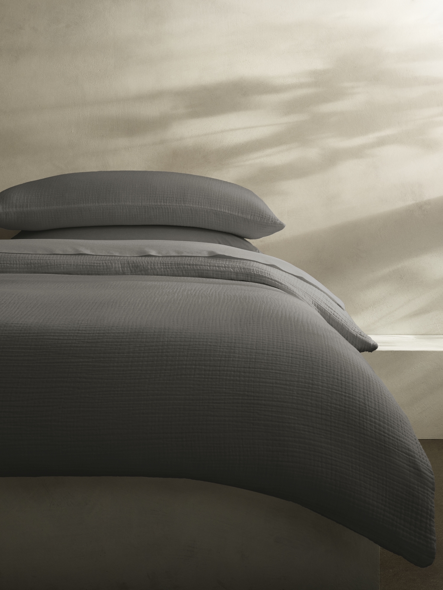 A cocoon of cloudlike luxury, this sumptuous duvet cover is crafted from layers of soft organic cotton gauze, an ideal choice to layer through the seasons and envelop you in opulence.