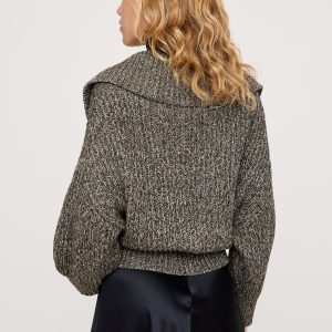 Everything about this sweater is the oversized fit, jumbo buttons, a dramatic sailor collar, and a beautiful, richly marled yarn spun from organic cotton.