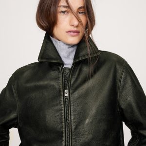 We looked to the archives to style this luxurious leather jacket. The style itself is classic and the silhouette is ever-so-oversized because the distressed leather here is special enough.
