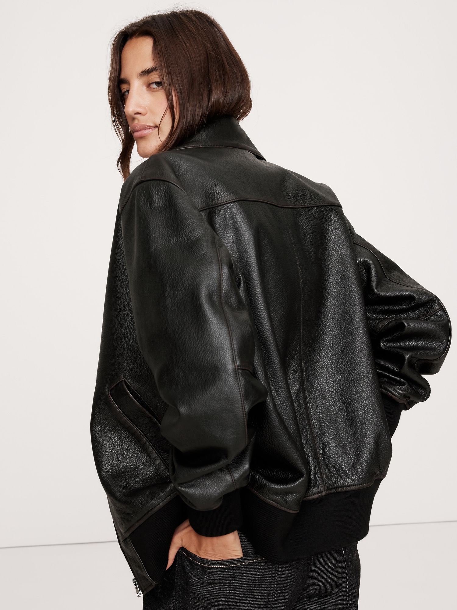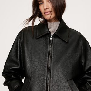Oversized Leather Bomber Jacket