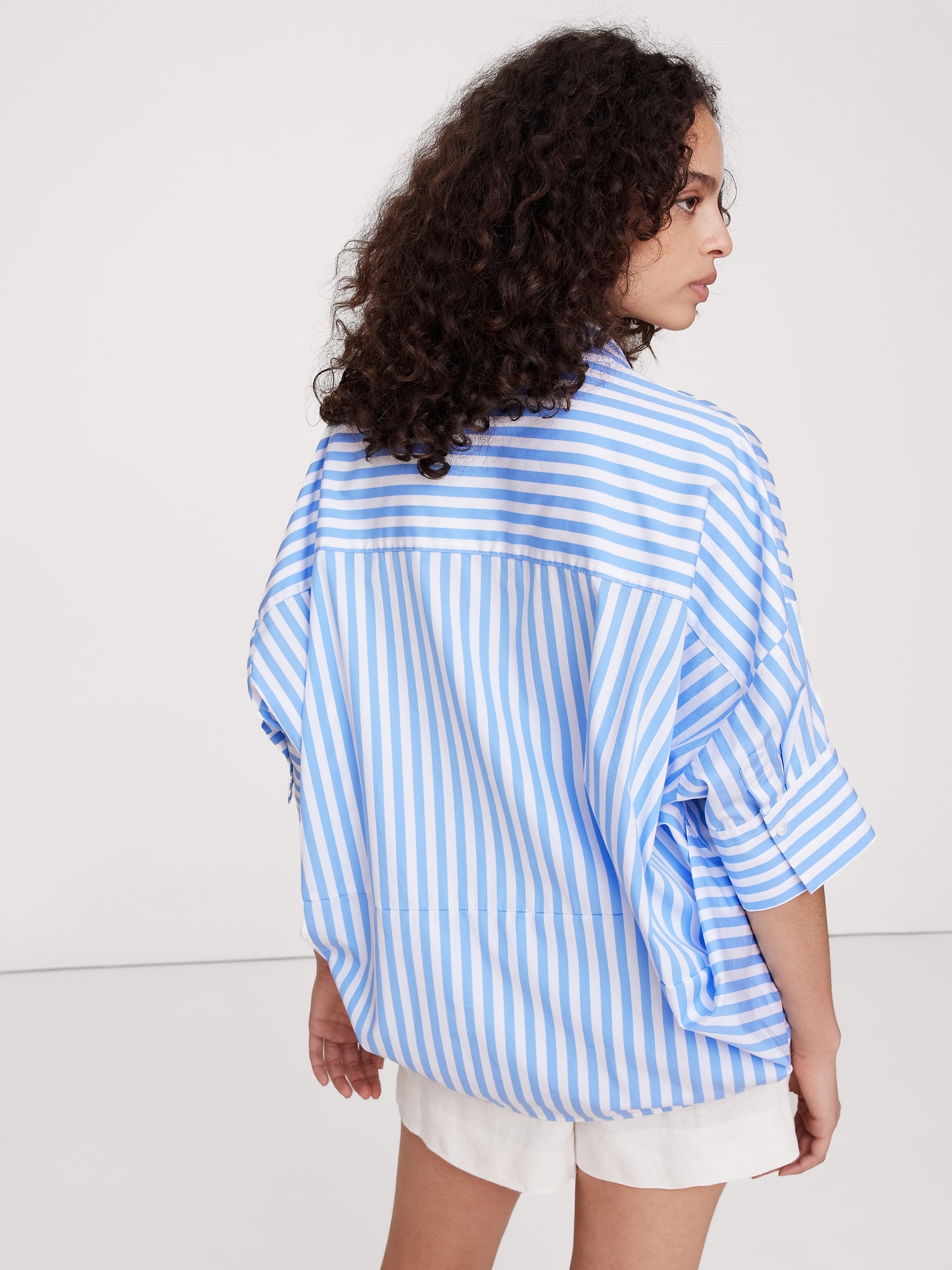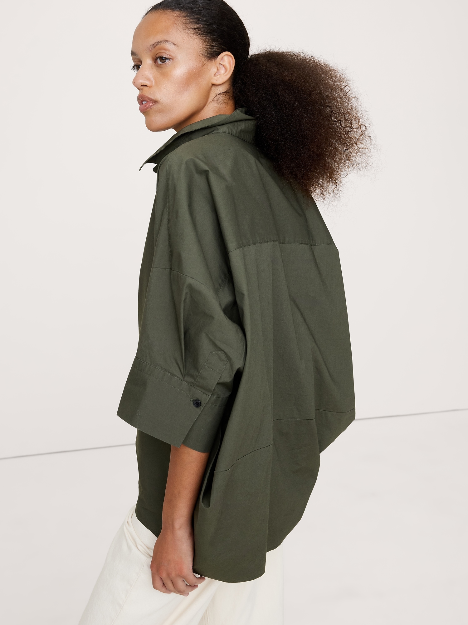 You love this oversized shirt so much, we had to bring it back. This popover shirt is crafted in our signature cotton poplin. We skipped the buttons this time, leaving the collar open for an at-ease effect. Style it with easy linen pants and sandals on warm days and pair with wide-leg jeans and boots on cooler days.