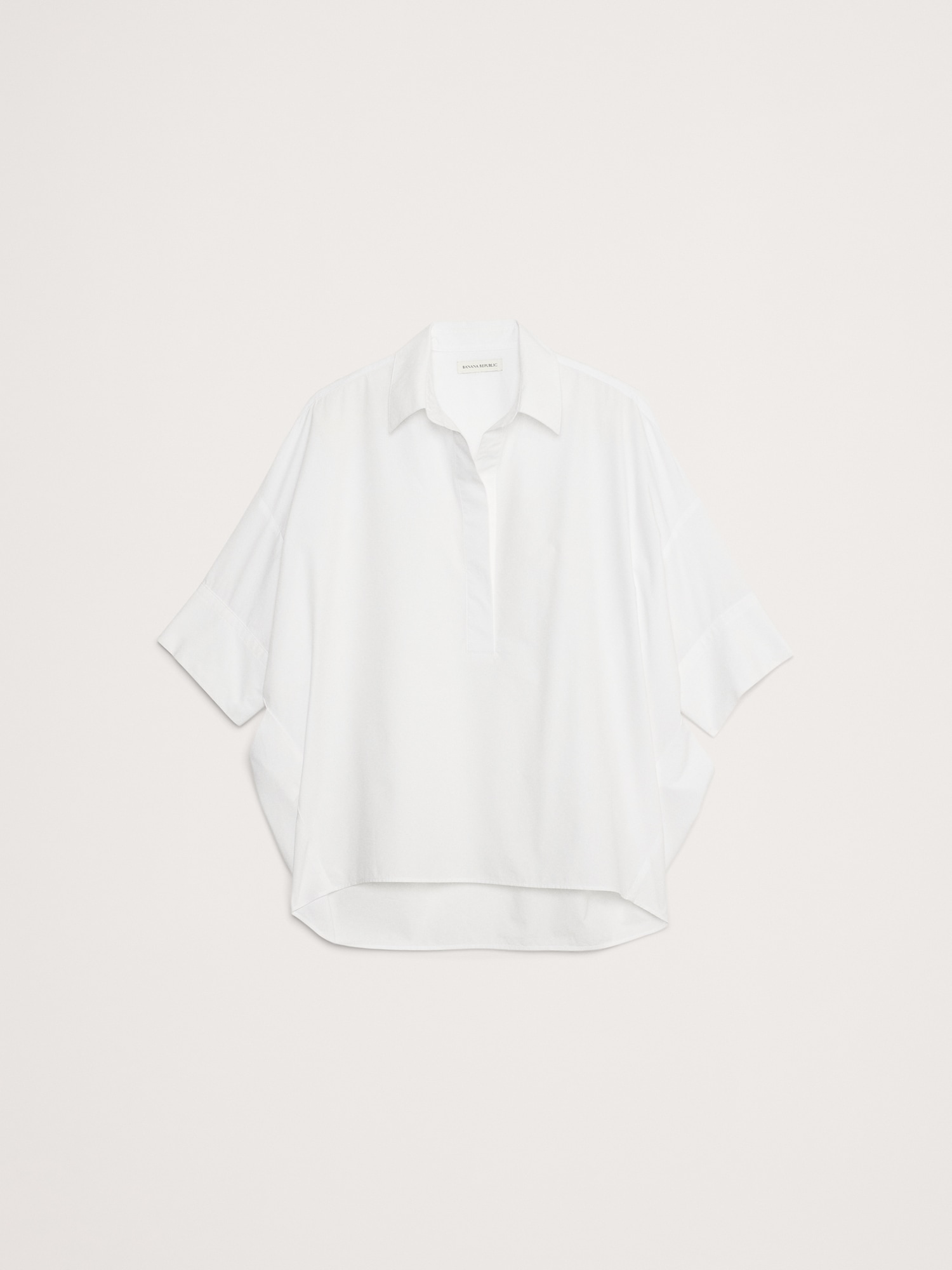 You love this oversized shirt so much, we had to bring it back. This popover shirt is crafted in our signature cotton poplin. We skipped the buttons this time, leaving the collar open for an at-ease effect. Style it with easy linen pants and sandals on warm days and pair with wide-leg jeans and boots on cooler days.