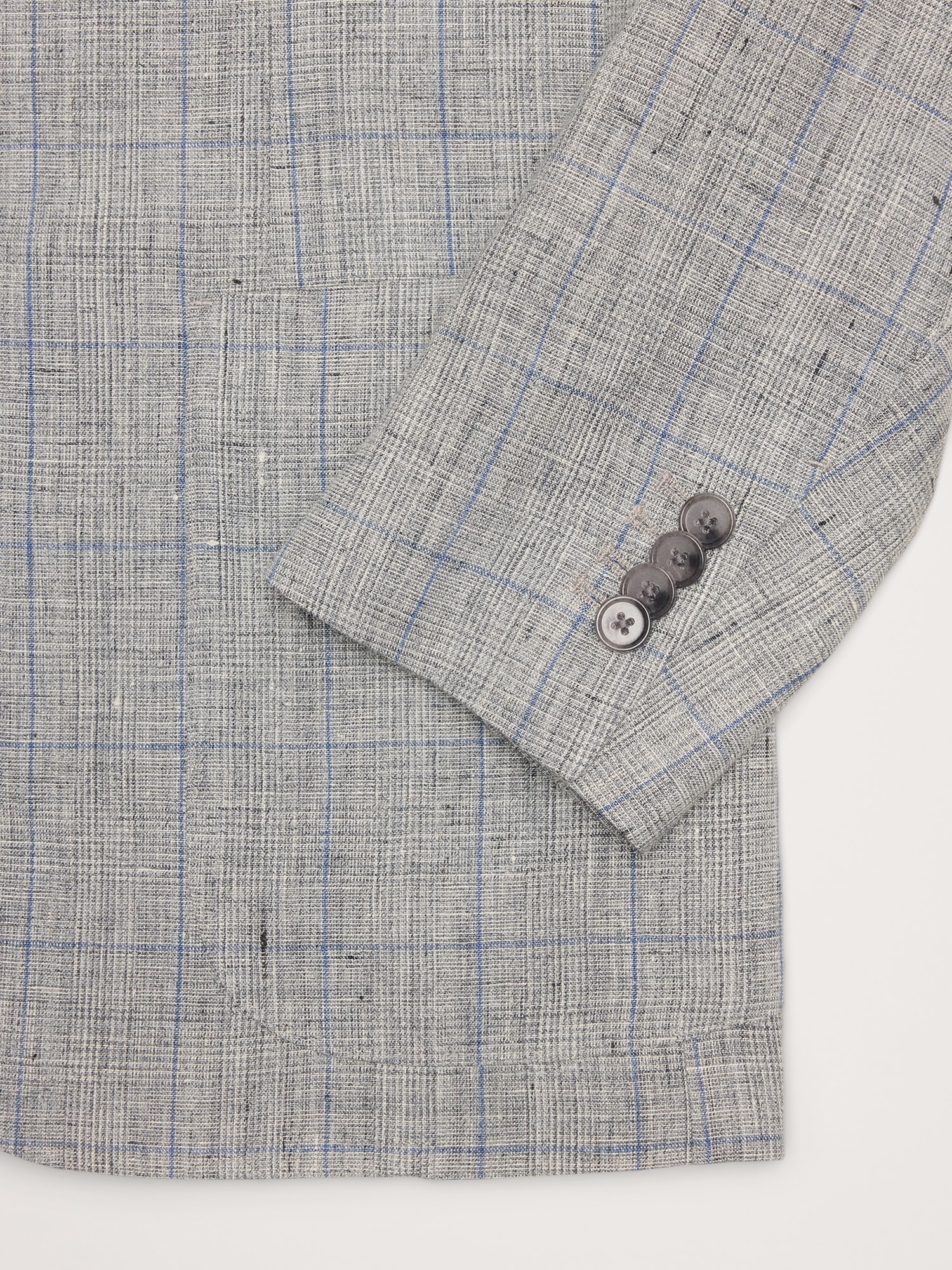 We cut this suit jacket with warm weather in mind, picking a beautiful, certified-European linen fabric and leaving the back unlined so it stays cool. Look closely: we love this fabric’s subtle blue windowpane pattern.