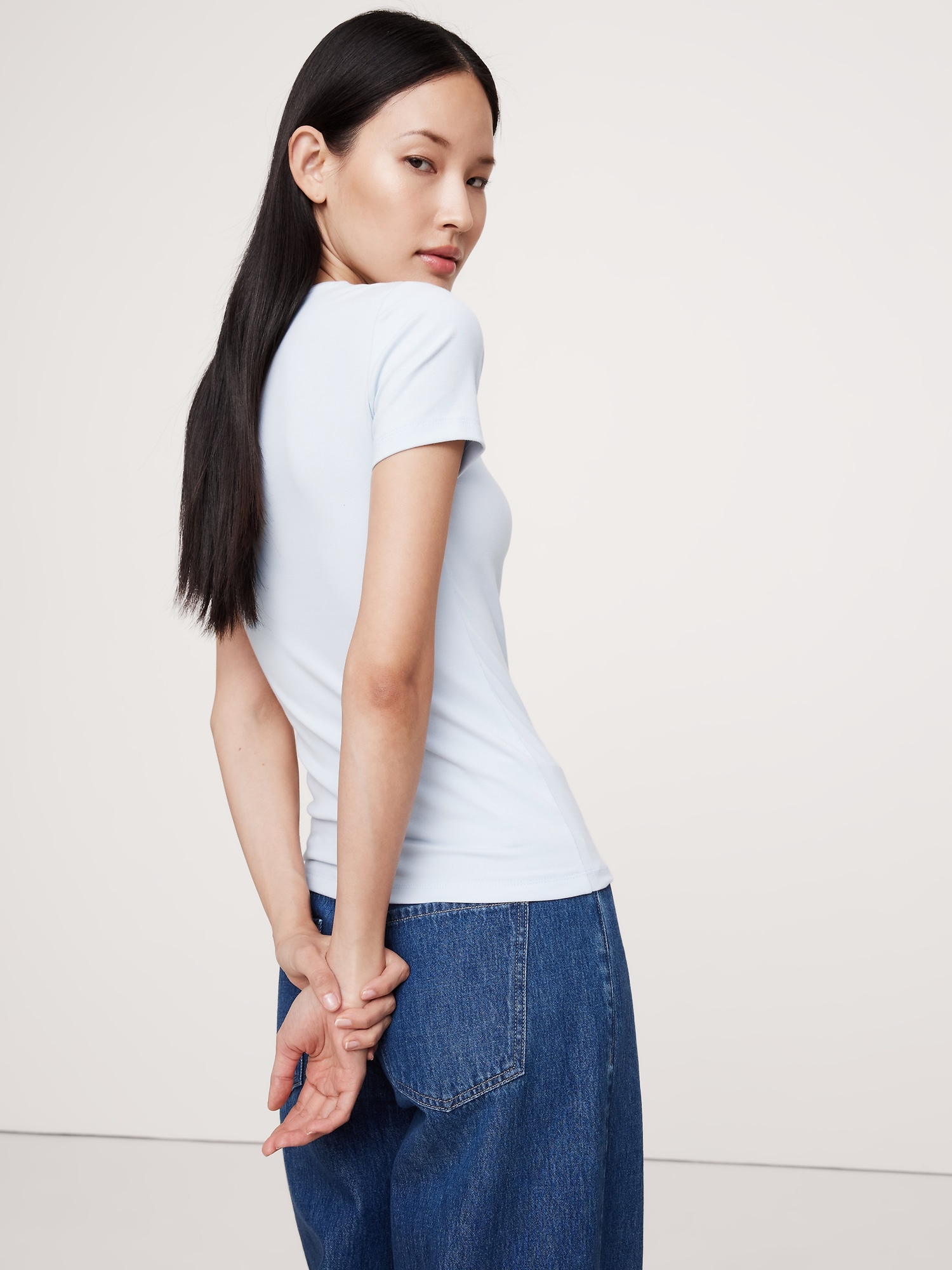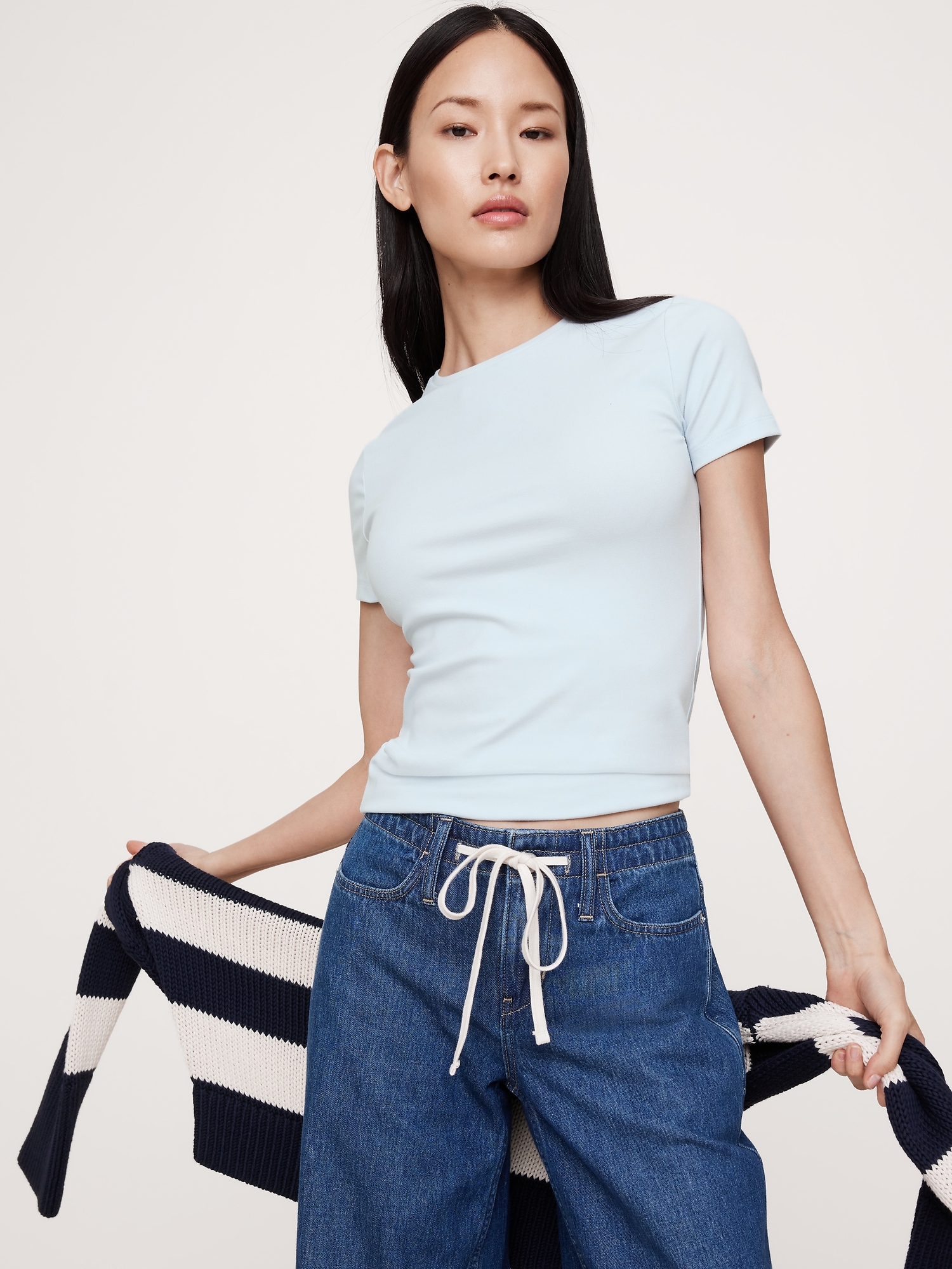 Our take on the baby tee trend, crafted in our Refined cotton jersey—a favorite because it’s oh-so-soft and stretchy.