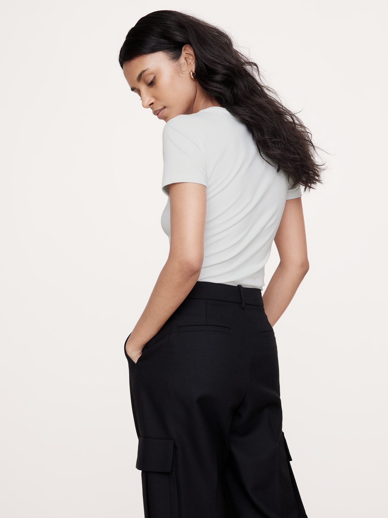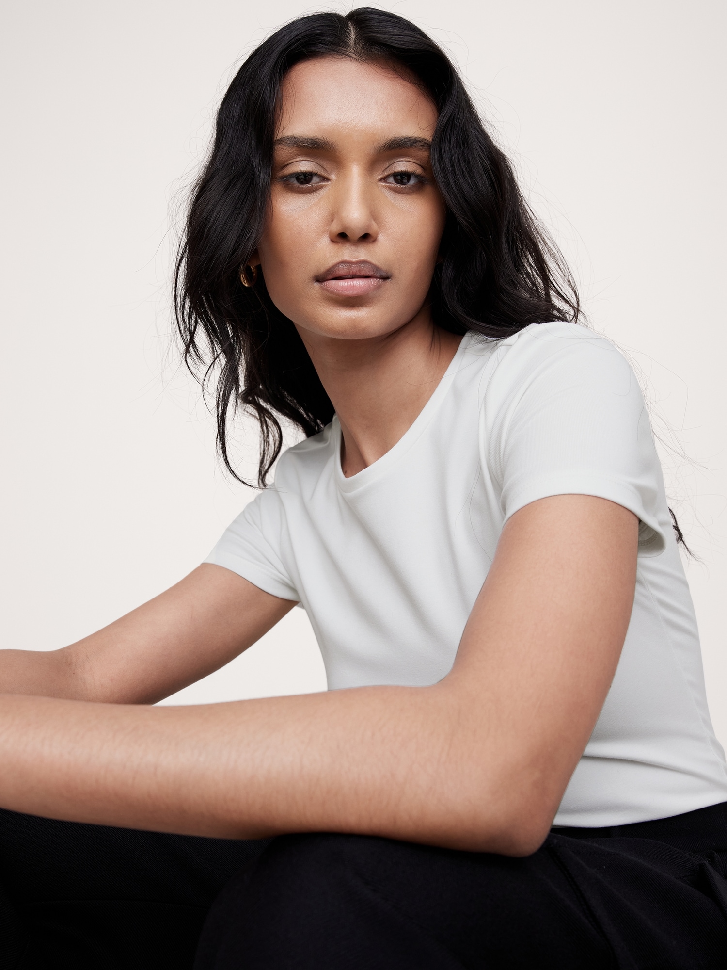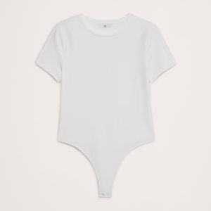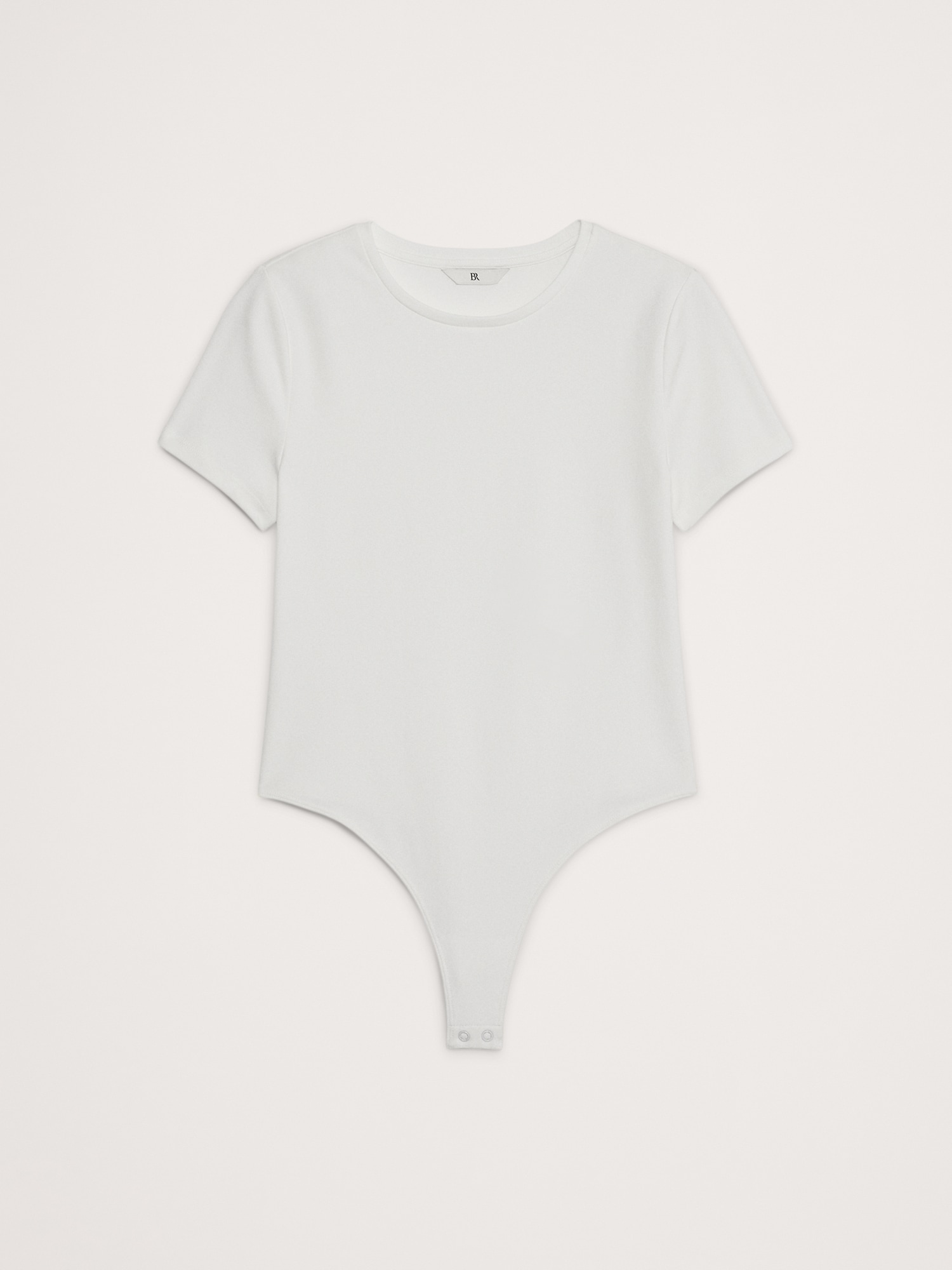 Soft and sleek, this cotton bodysuit is fortified with a high-stretch fabrication and a crew-neck silhouette so it transitions easily through the seasons.