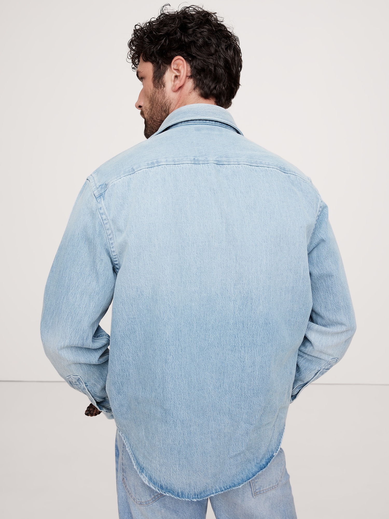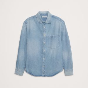The vibe is vintage. We cut this relaxed shirt from a soft denim fabric in a weight that’s just slightly heavier than chambray so it’s easy to layer through the seasons. Plus, we added a wash to mimic the look and feel of true vintage.