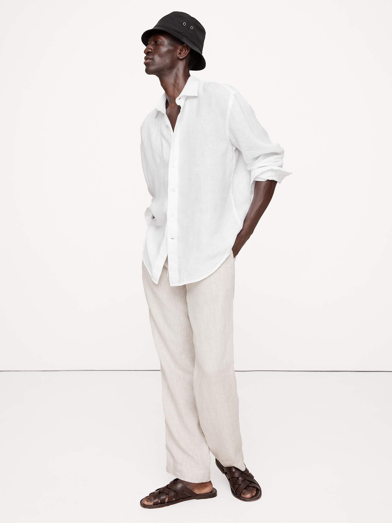 Made from 100% certified-European linen, just the way we like it. We kept the silhouette of this long-sleeve shirt relaxed and opted for a classic point collar.