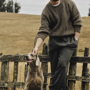Things we love about this pant: the easy silhouette, the pull-on design, and the beautiful herringbone fabric (it has a touch of wool for extra warmth and softness).