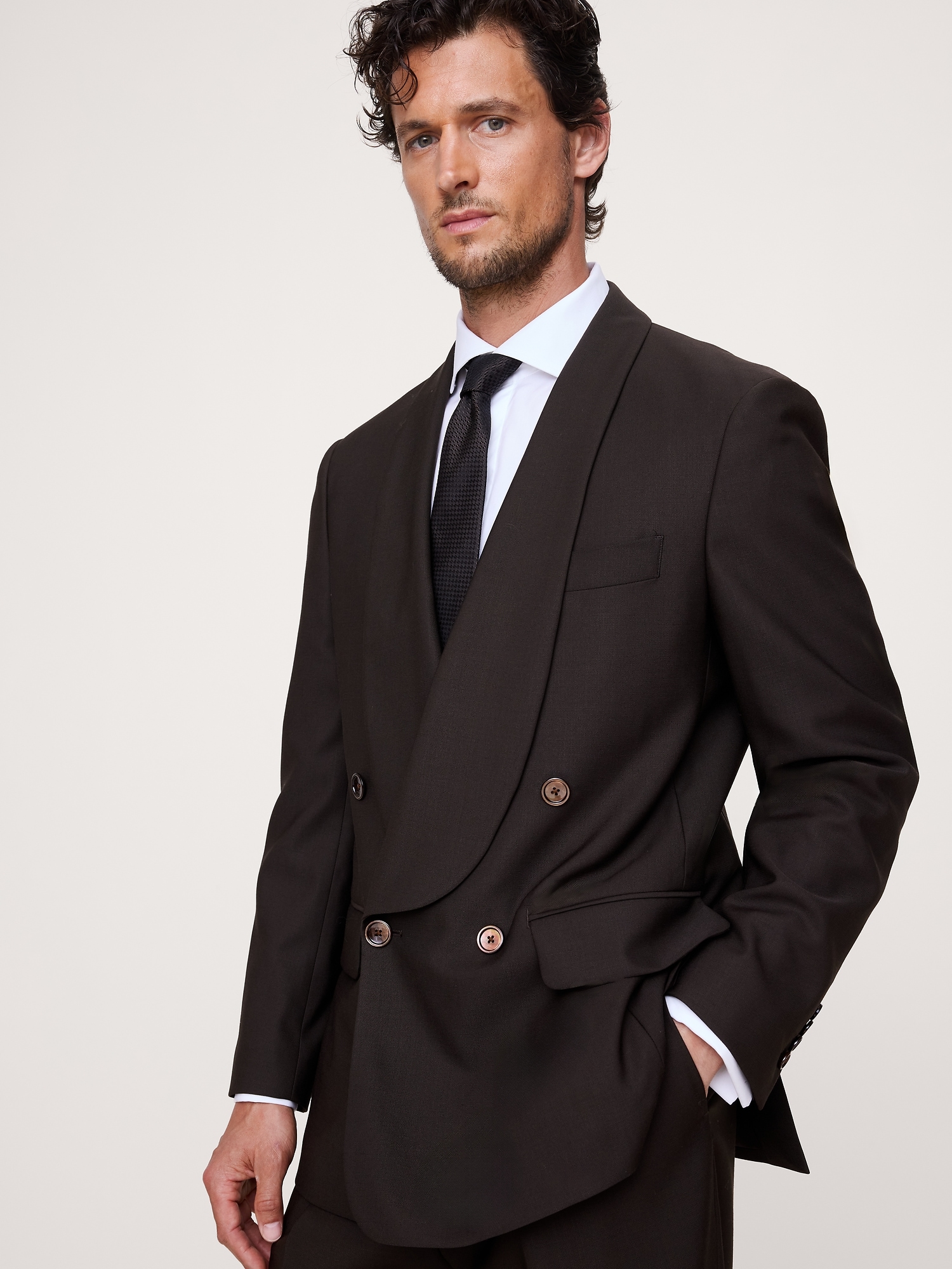 A very cool tuxedo. We kept the fit relaxed for this shawl-collar tuxedo jacket, crafting it in a beautiful Italian wool barathea woven for us in Italy by famed Marzotto mill.