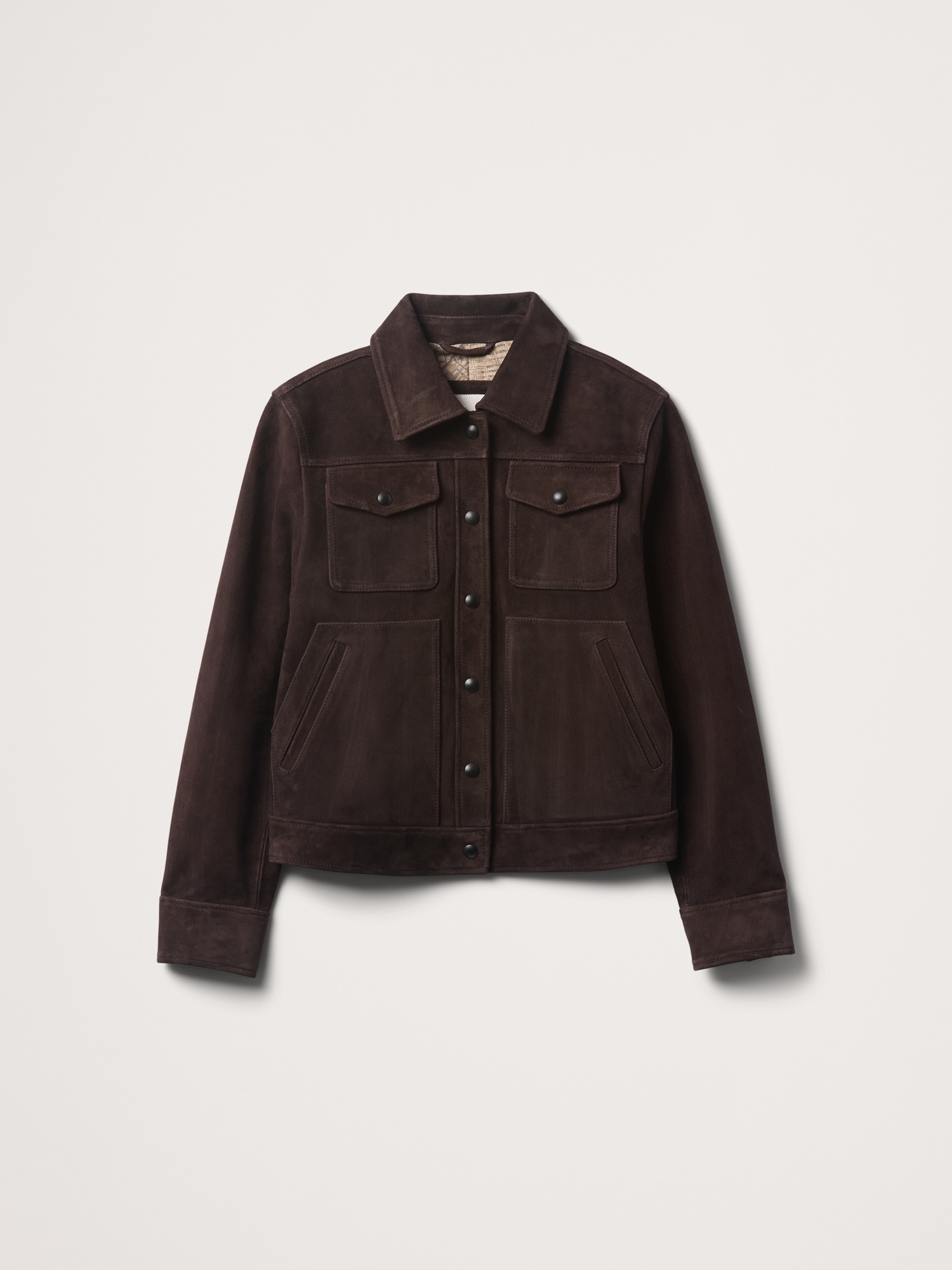 A luxurious take on a utilitarian staple, this suede jacket borrows its silhouette from classic trucker jean jackets. We kept the pocketing, snap buttons, and top-stitch detailing of the original, and rendered it in premium suede, made in one of the world’s most renowned ateliers. Plus, since it’s suede, it will only get better with time, developing a rich and unique patina.