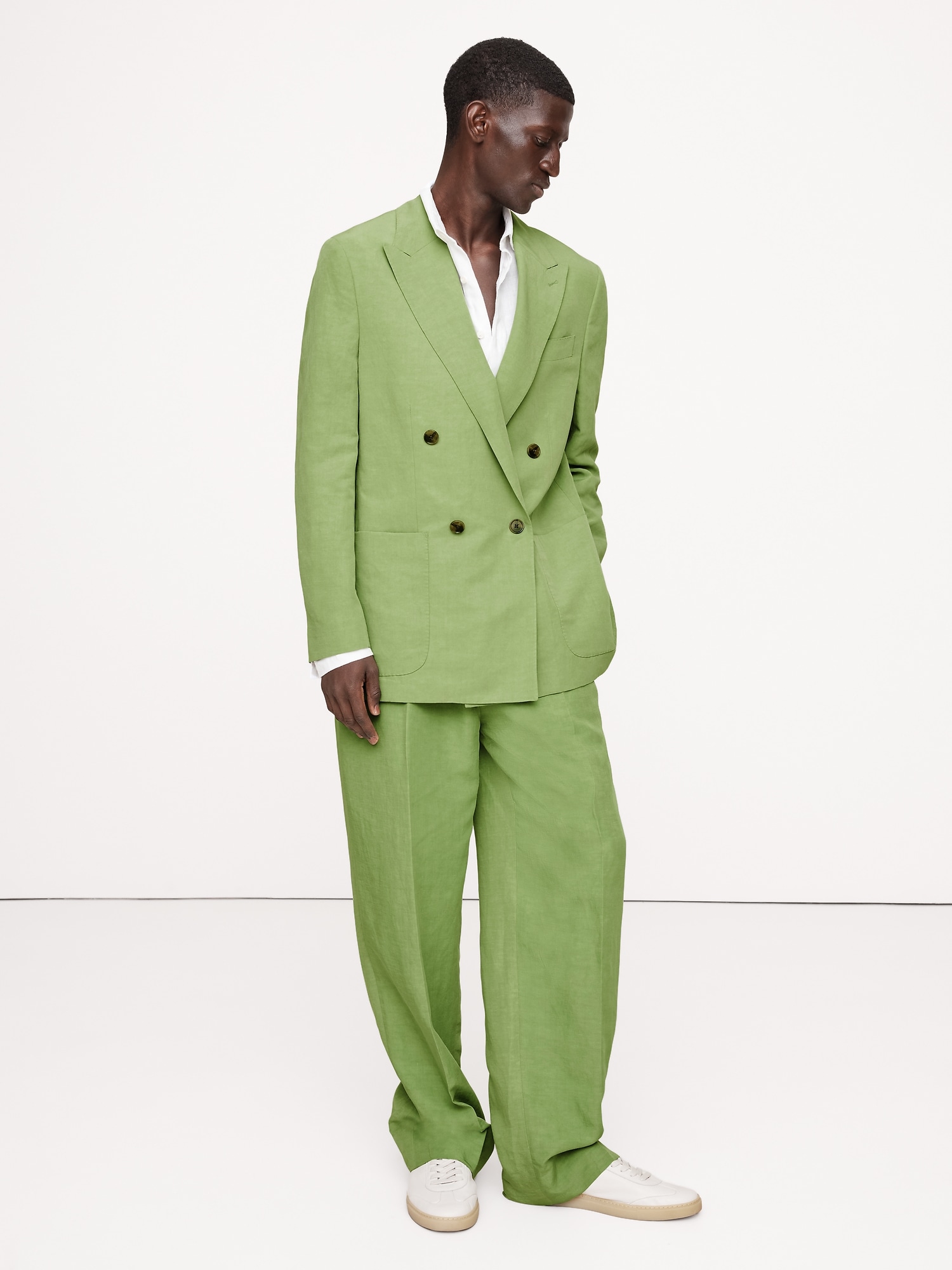 A very cool suit. We kept the fit relaxed for this double-breasted suit jacket, crafting it in a silky blend of TENCEL™ lyocell and luxurious linen—an ideal choice in heat and humidity.