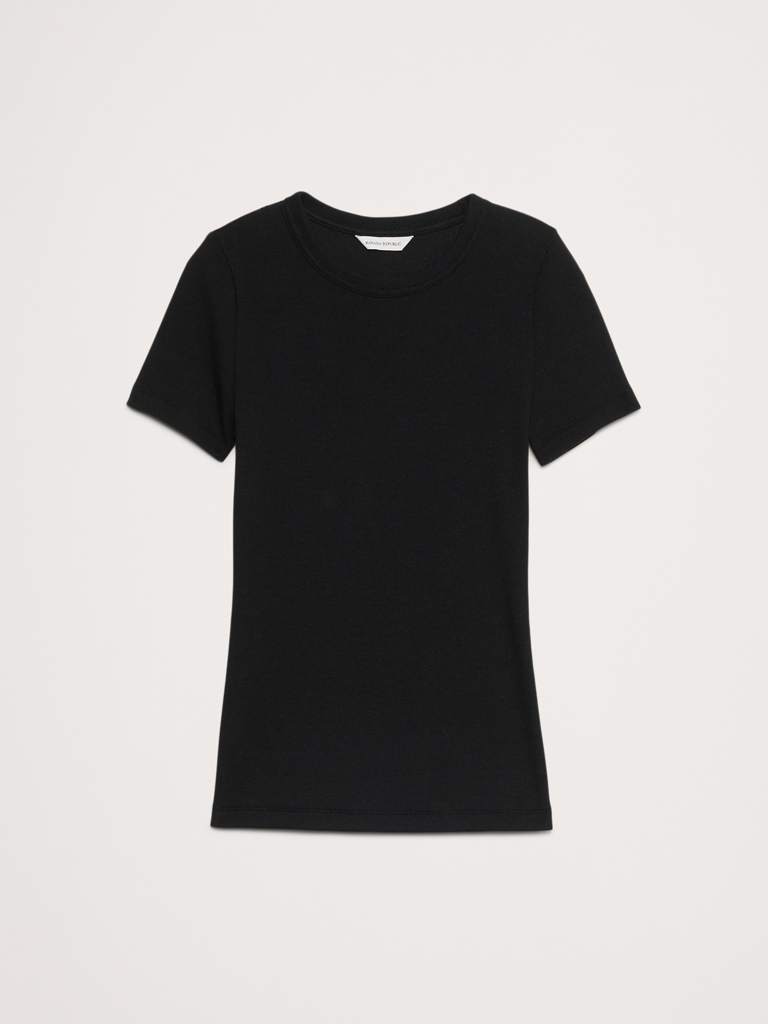 Our take on the baby-tee, cut from a soft and oh-so-stretchy ribbed knit.