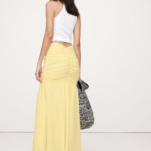 Go ahead, RSVP yes. A fresh take on the season’s Y2K revival styles, this maxi skirt is cut from a viscose crepe that feels light-as-chiffon with a subtle stretch. Ruched sides enhance the drop waist and figure-hugging silhouette.