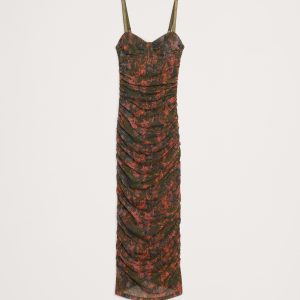 Ruched Mesh Corset Midi Dress