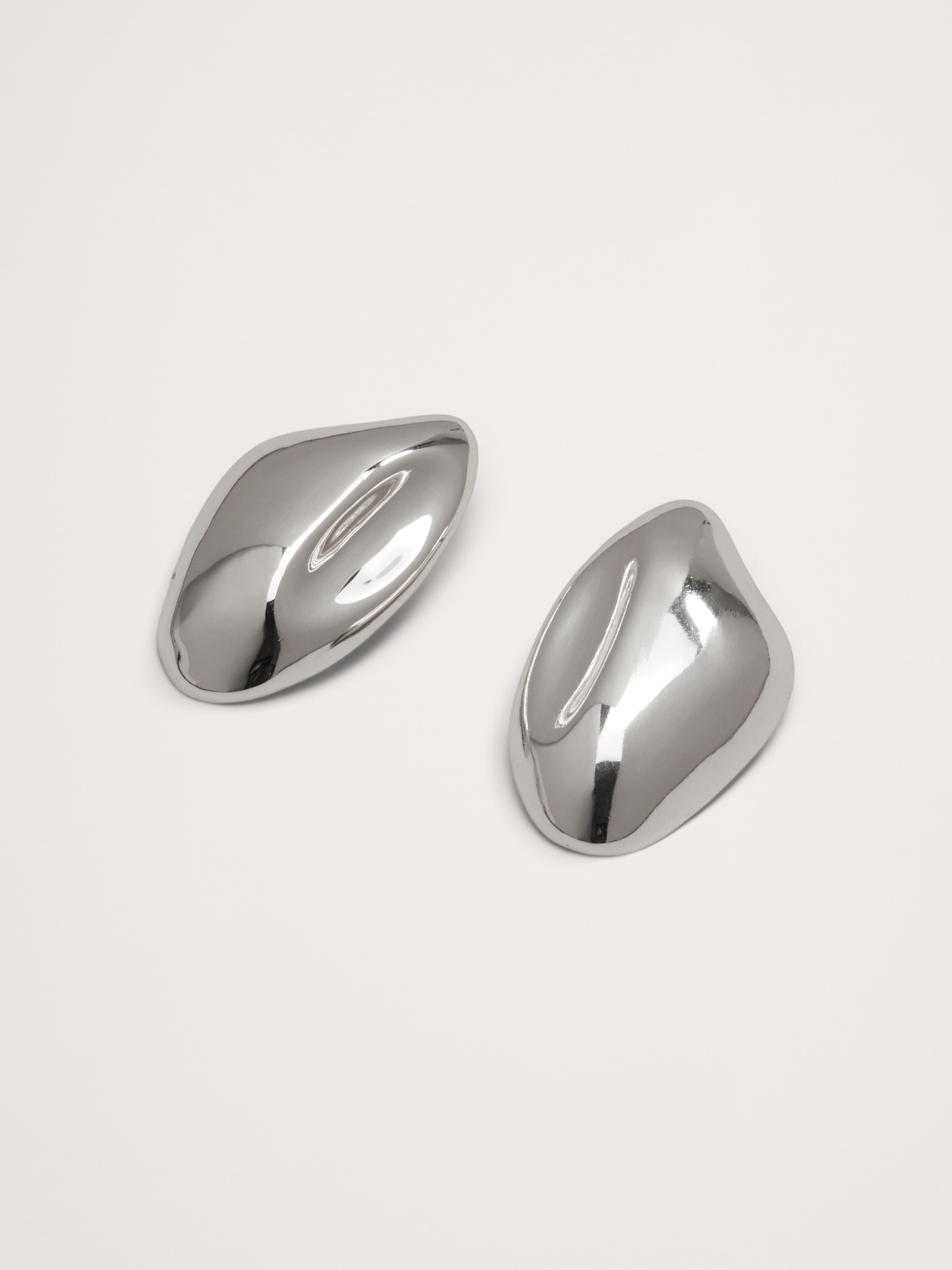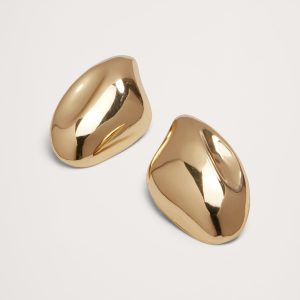 Curvaceous contoured earrings cast in parts and brazed together are hollow and lightweight. Handmade of brass with gold finishing or silver plating.