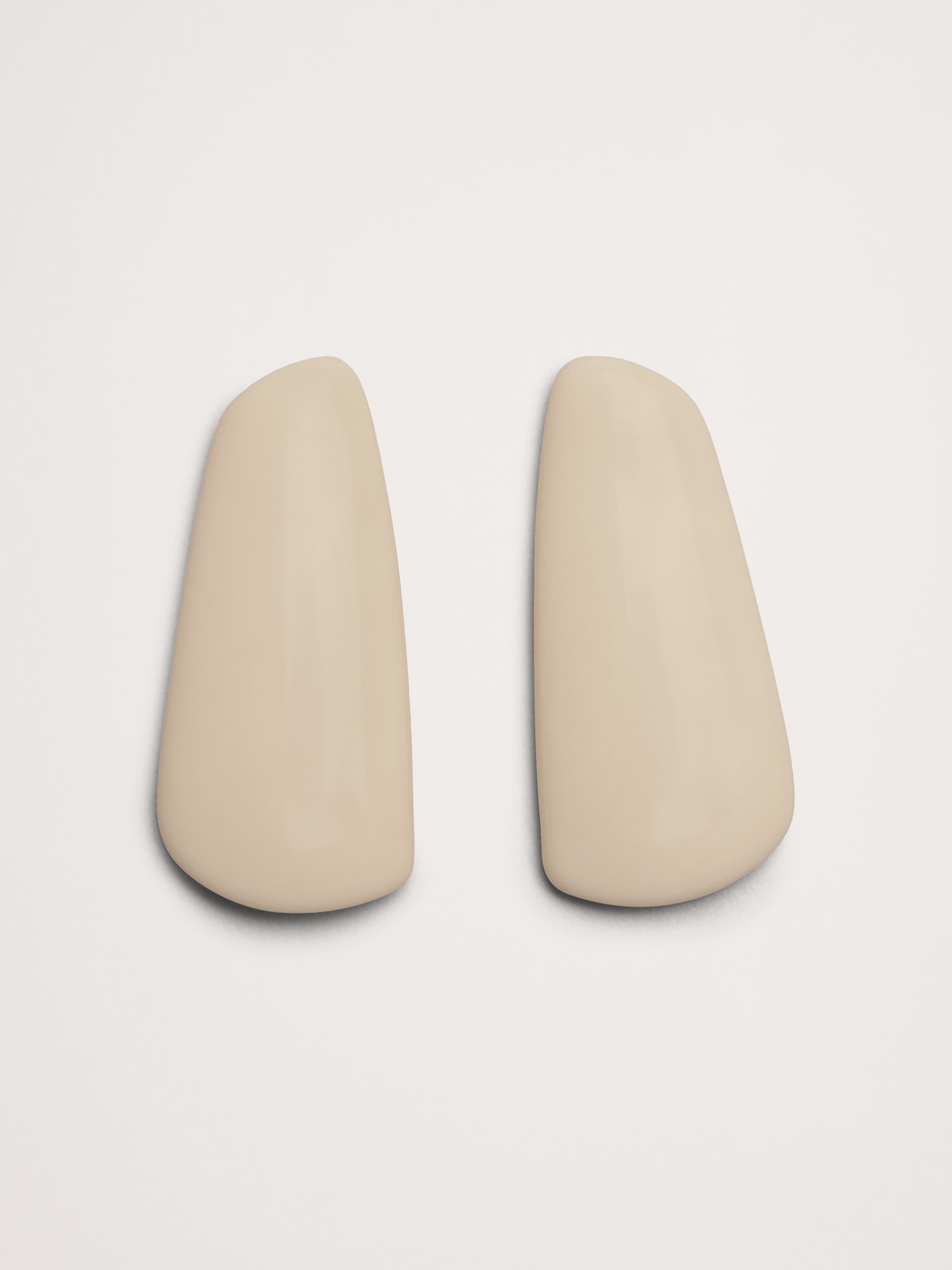 Modern earrings are made of smoothly polished resin in long oblique shapes.