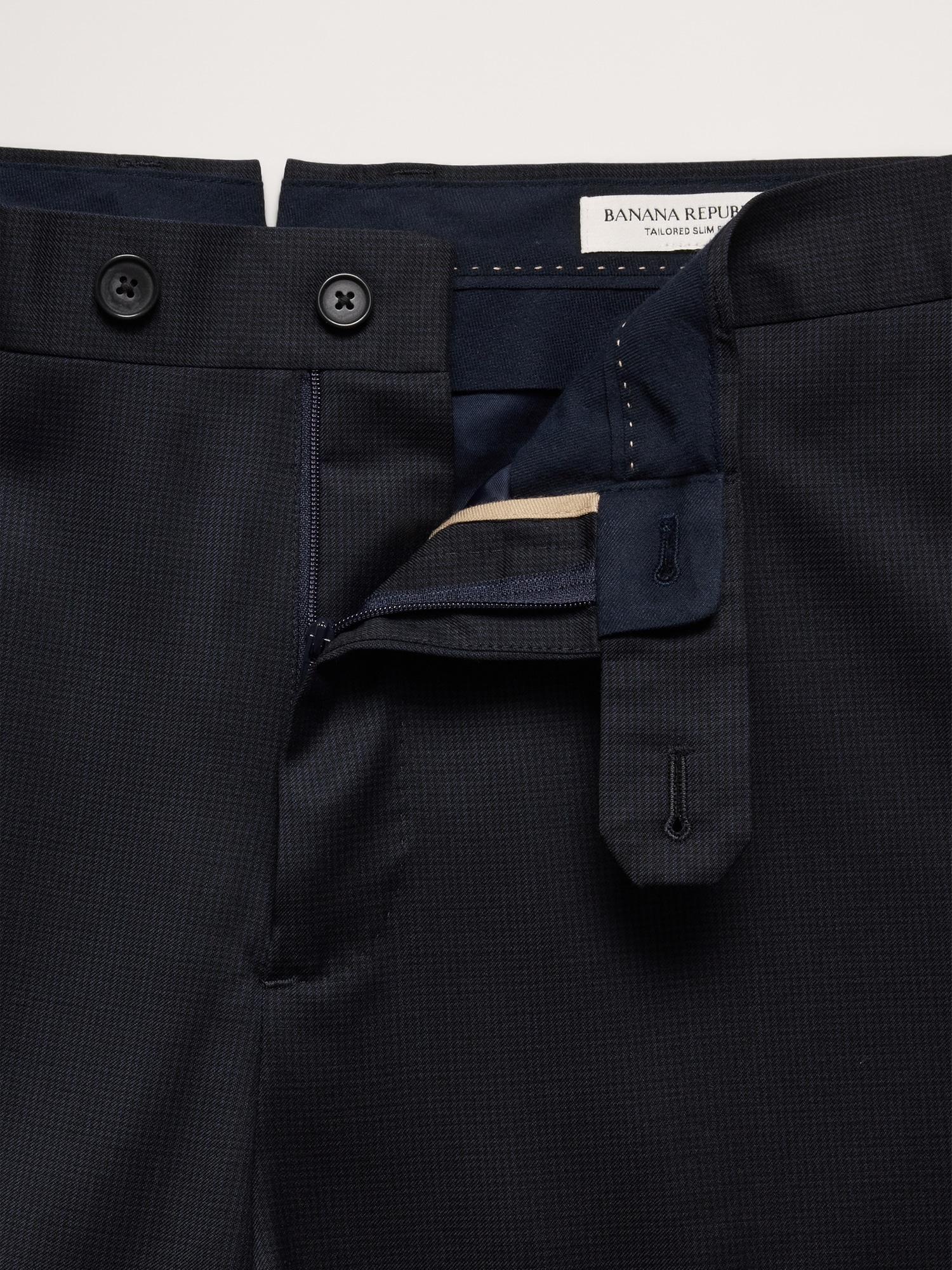 Top-tier tailoring, we finished this suit pant with a trouser crease for a traditional and timeless look. This one is cut from a handsome Italian wool with a micro houndstooth print in a rich, navy blue color.