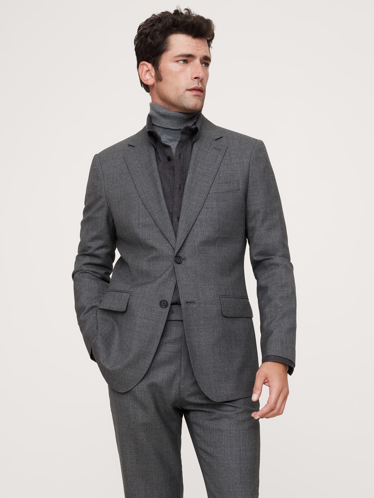 This sophisticated Italian wool suit jacket stands up to warm weather with a luxurious tropical wool fabric—a fabric beloved for its distinctive balance between an open weave and a tighter tension yarn, which gives it the ability to remain breathable while always looking pulled-together. Wrinkle-ResistantSlim Fit: Sits at the natural shoulder with an Italian-style soft shoulder expression. Fitted through the chest and waist.