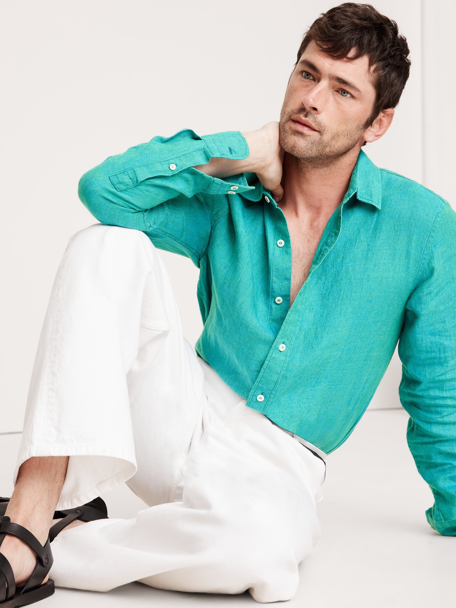 Made from 100% certified-European linen, just the way we like it. We kept the silhouette of this long-sleeve shirt easy and opted for a classic point collar.