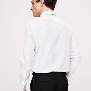 This tuxedo dress shirt is cut from a premium cotton poplin, selected for its light structure, accented with the traditional pleated detail.
