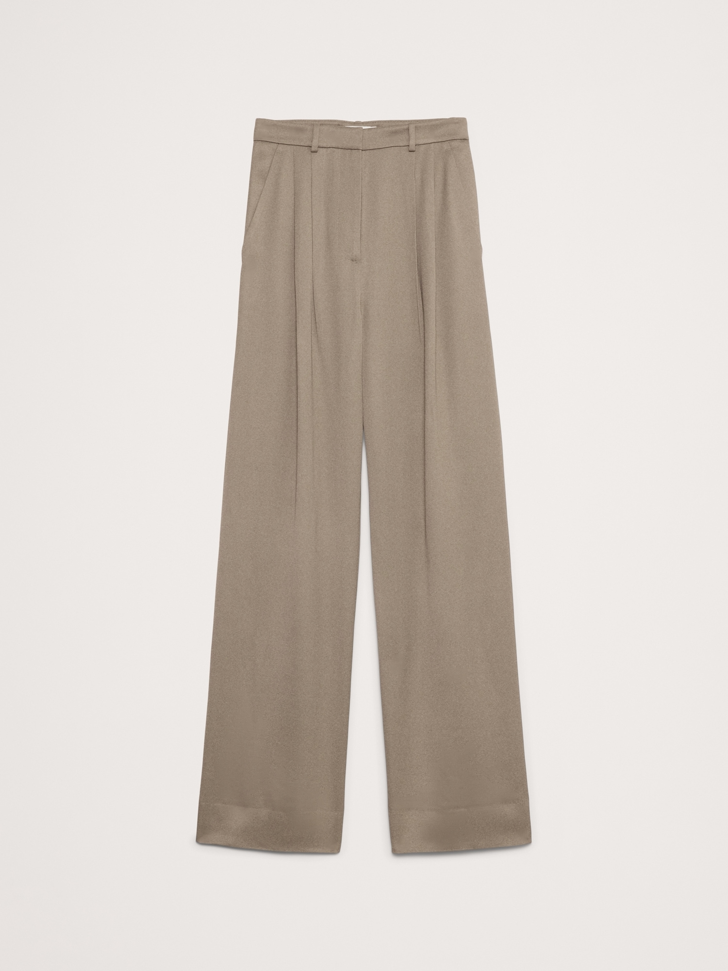 Meet the high-rise pants we can’t stop wearing. We cut these wide-leg pants with a double-pleated front for a borrowed-from-the-boys vibe. For fabric, our design team selected an Italian satin that strikes the perfect balance between tailored and feminine.