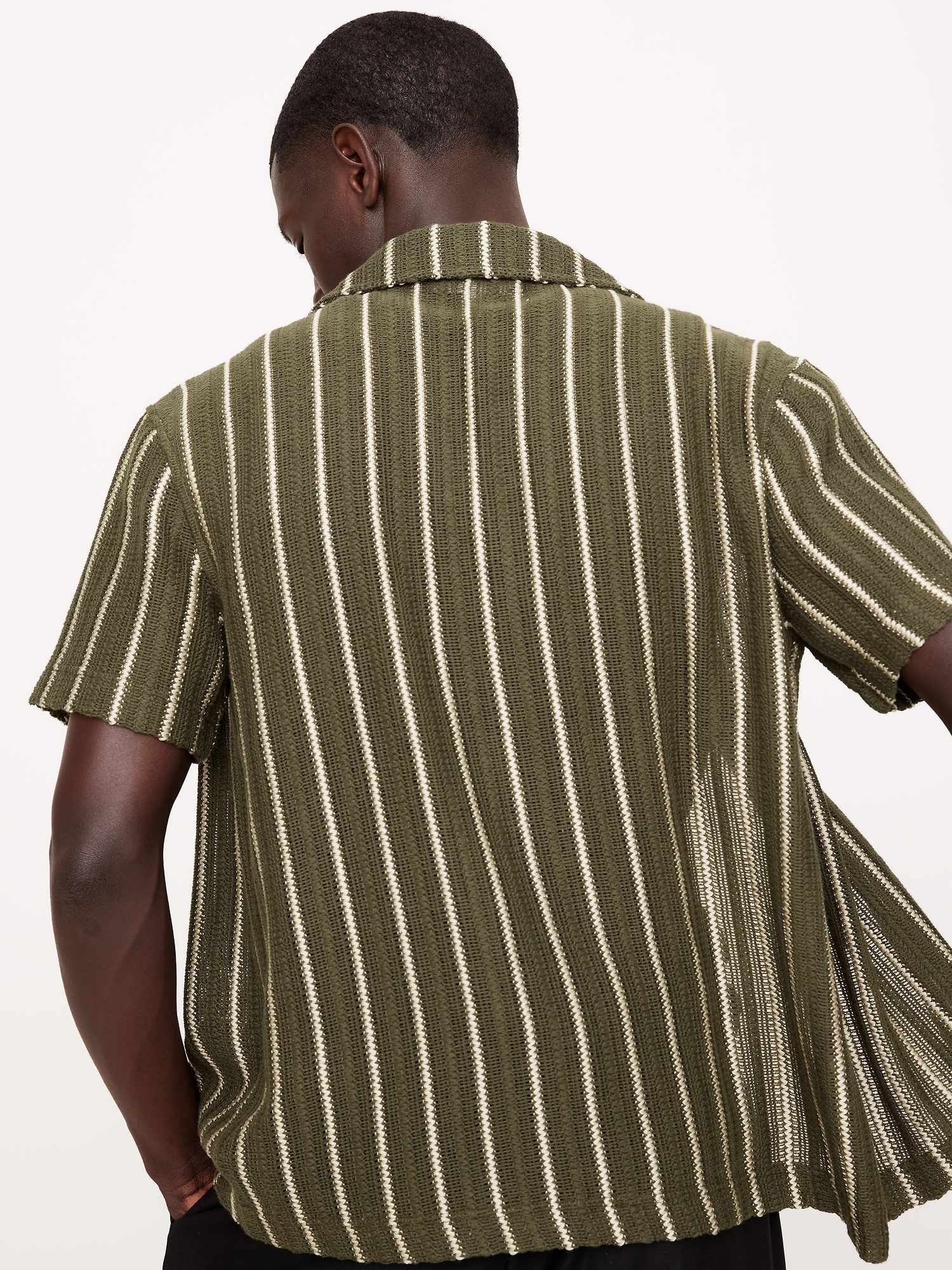 Think of this as the shirt you’ll reach for all summer long. It’s cut from a stripe jacquard fabric with an open, crochet-like texture we love for its retro vibe. Leave it unbuttoned and layer it over a light t-shirt or wear it on its own.