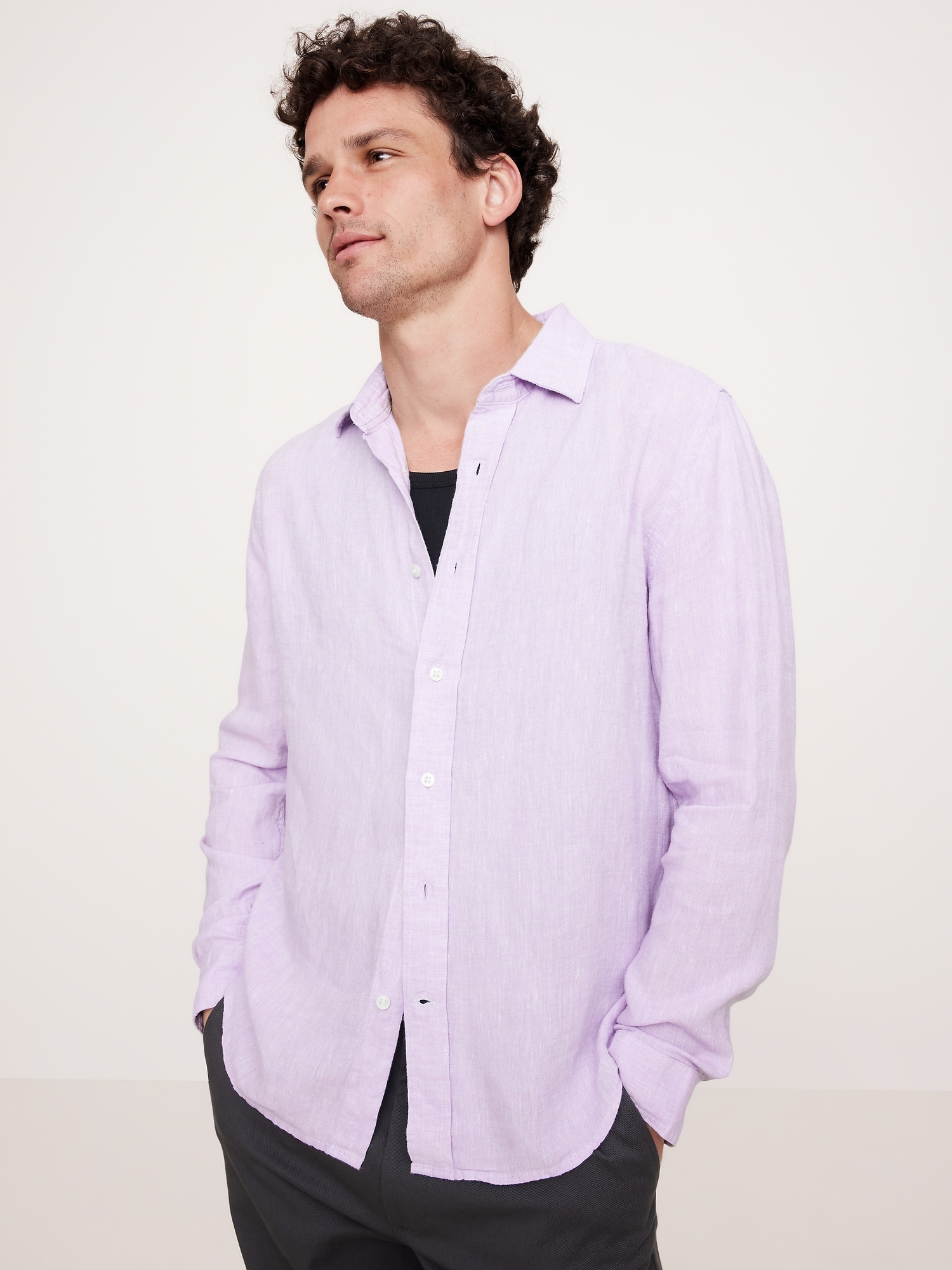 Made from 100% certified-European linen, just the way we like it. We kept the silhouette of this long-sleeve shirt easy and opted for a classic point collar.