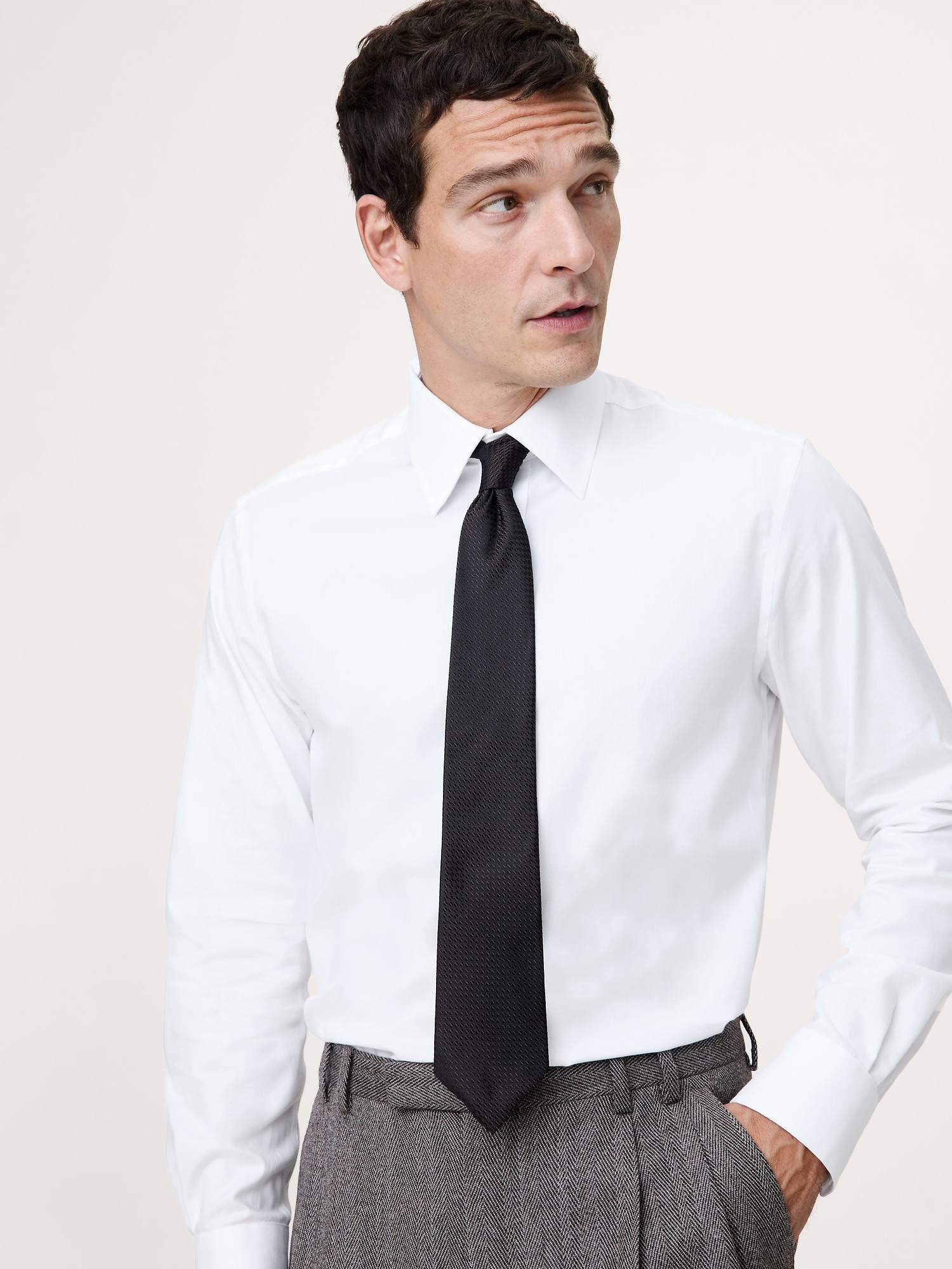 Designed for ease of wear and care, this sleek dress shirt employs a special cotton fabric with PUREPRESS™ cotton technology, a special process that smooths and protects the fabric, resulting in a finish.