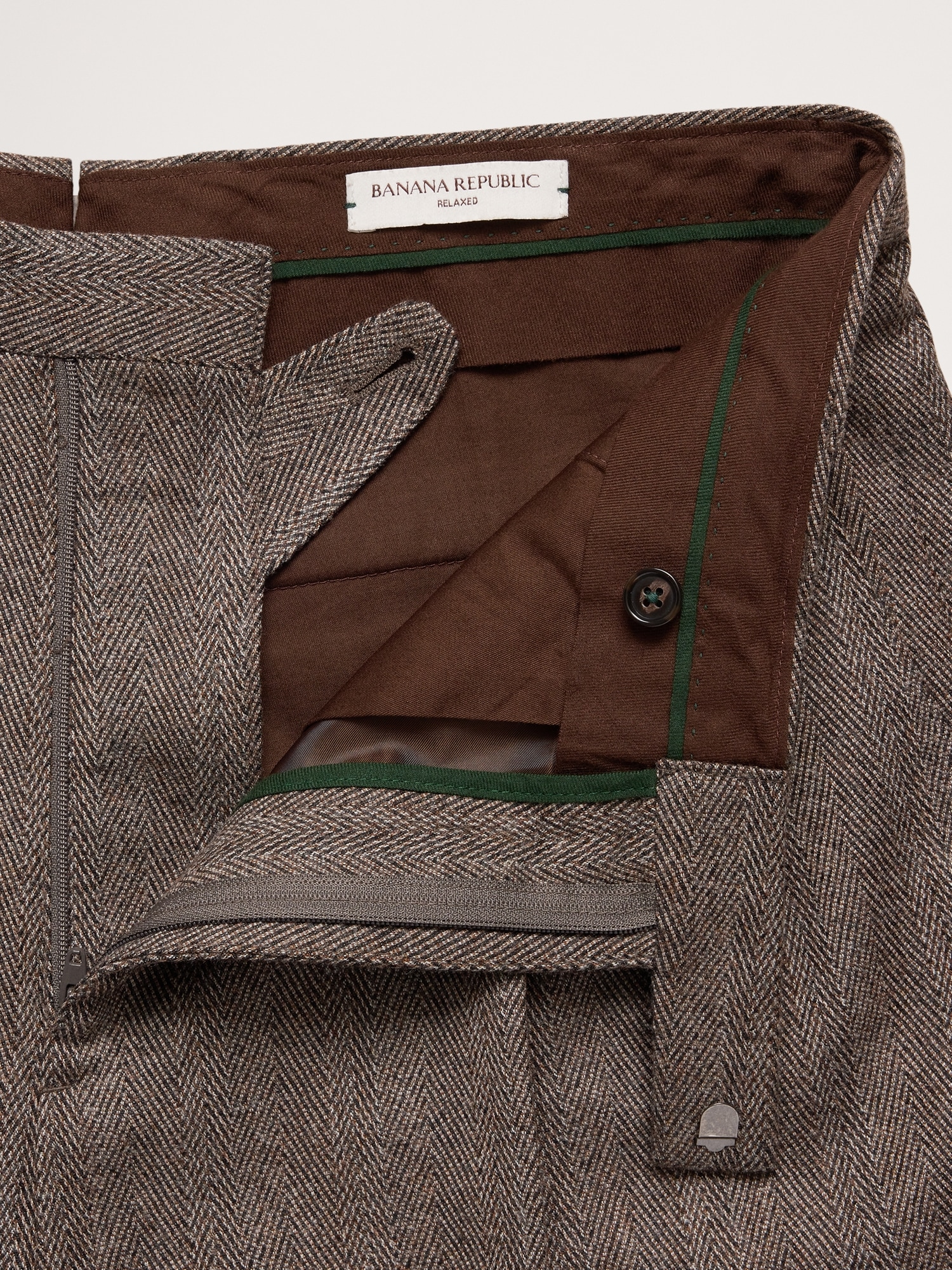 Designed with cooler climates in mind, this sleek suit pant is cut from an Italian herringbone fabric woven from 100% wool.