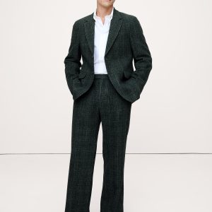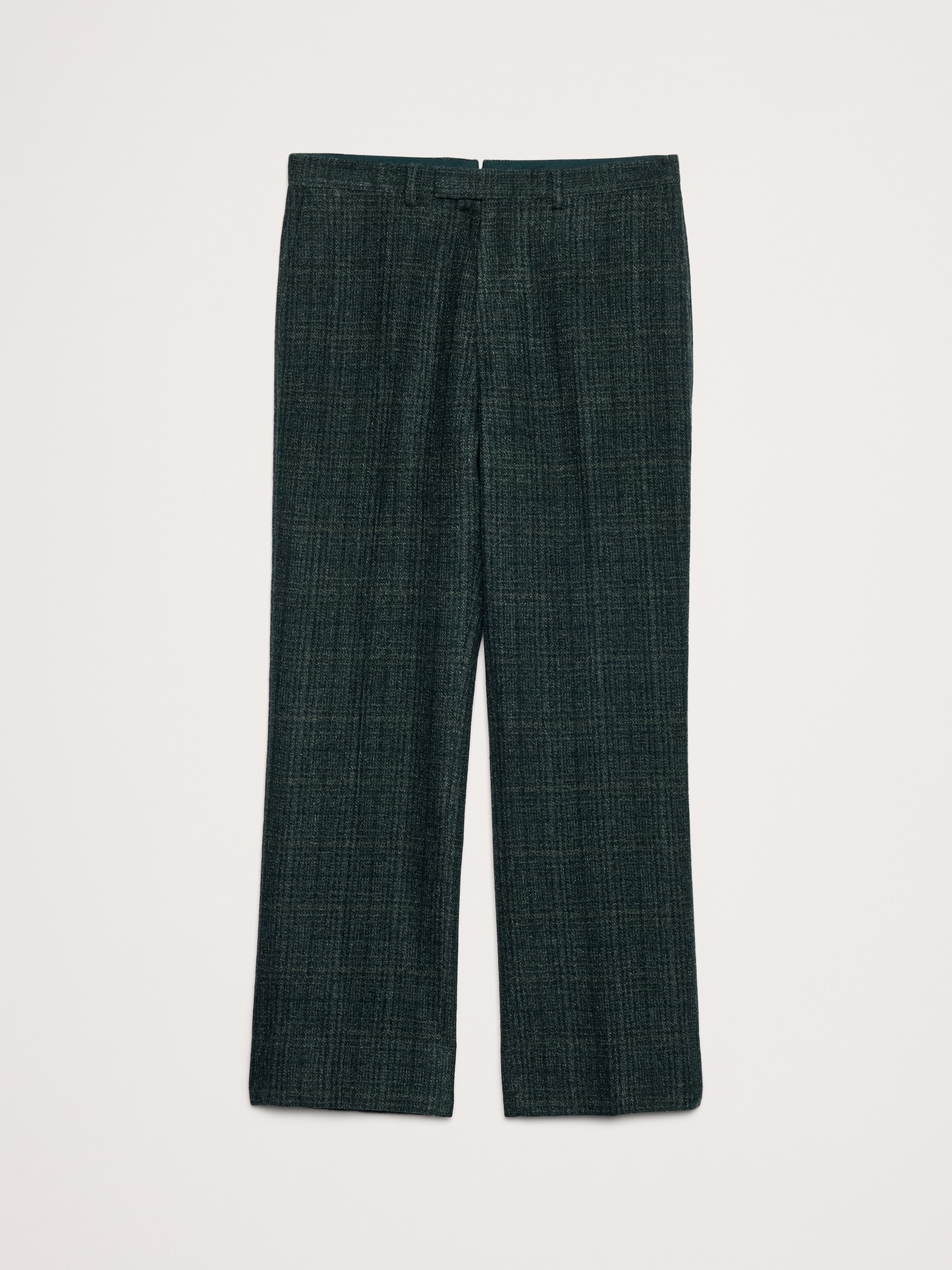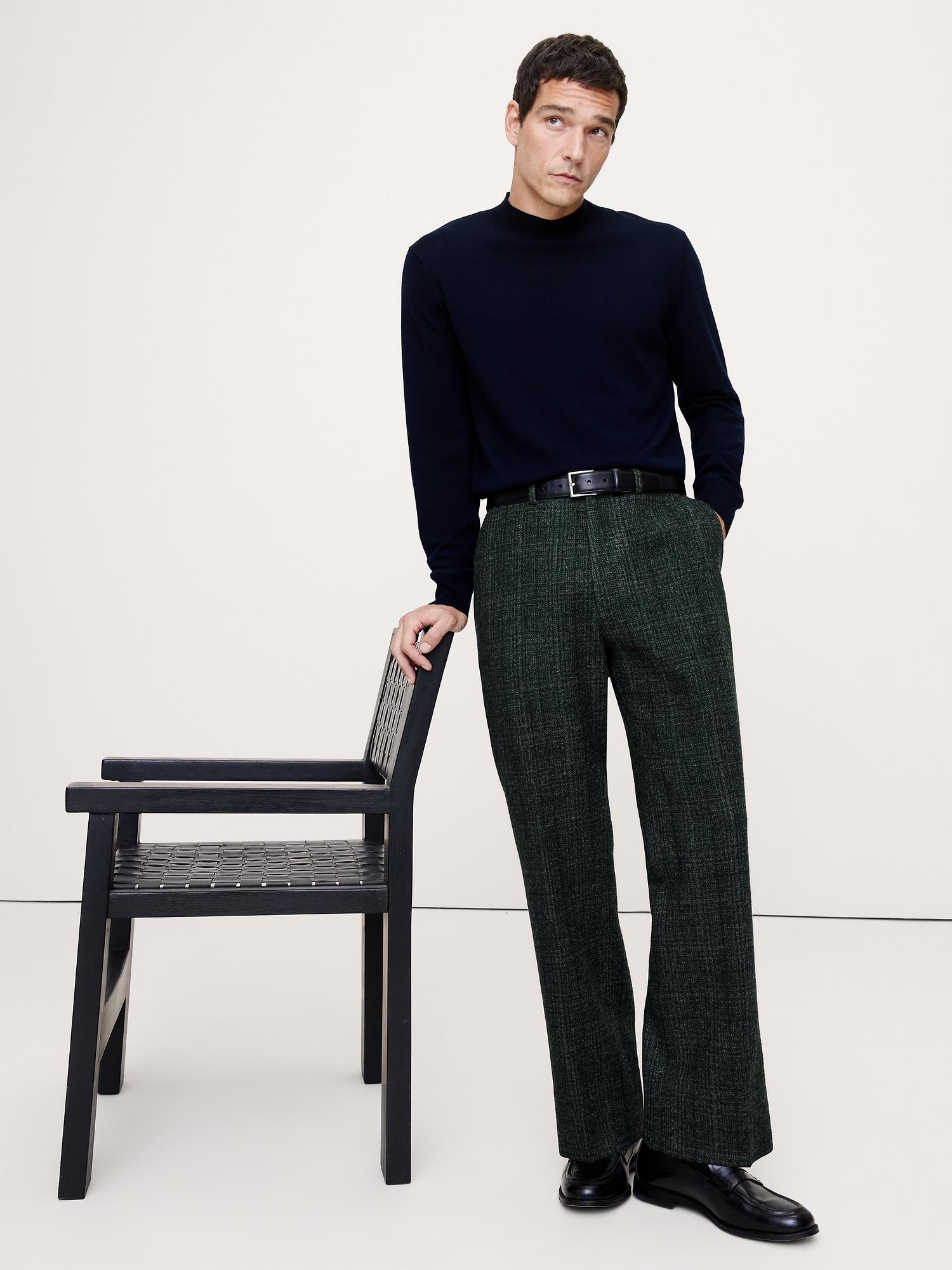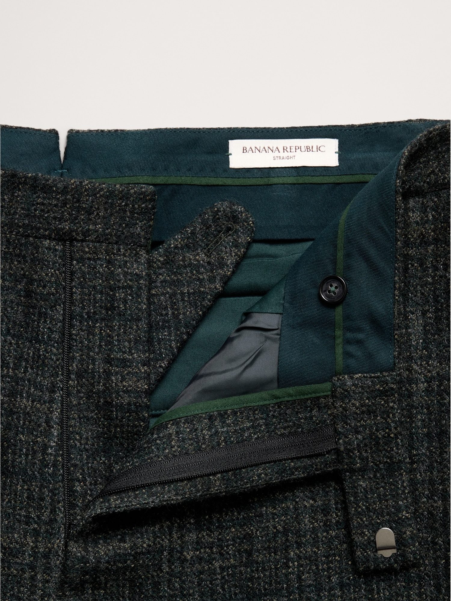 We knew we had to do something special with this Merino wool tweed from Italy, so we cut it into a straight-leg pant with a streamlined silhouette to show off this beautifully textured fabric.
